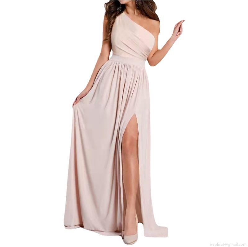 • Women's Sexy One Shoulder High Slit Maxi Dress Elegant Sleeveless Polyester Spandex Slim Fit Long Party Evening Dress For Women