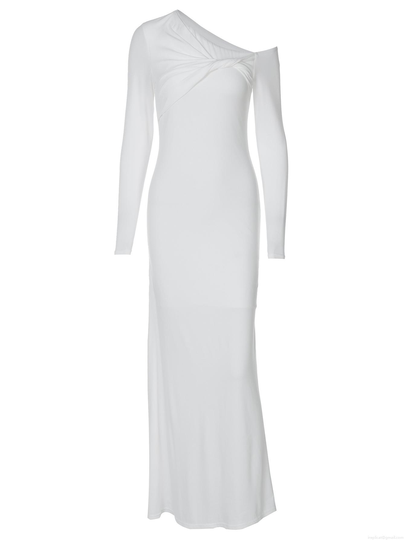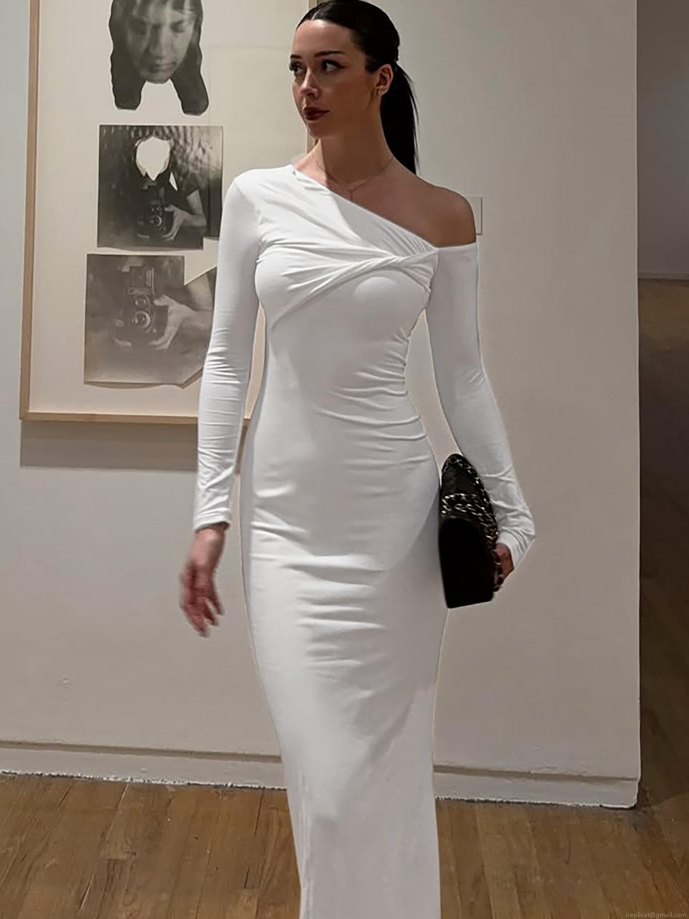 • Women's Sexy One Shoulder Maxi Dress Long Sleeve Twist Knot Ruched Elegant Evening Party Bodycon Dress Polyester Spandex Solid Color Slim Fit Long Gown