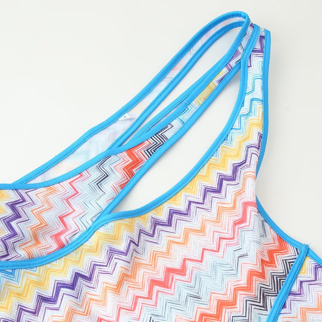 One Shoulder, Colorful Wave Pattern, Hollow Out, Backless, Forked, Jagged Texture