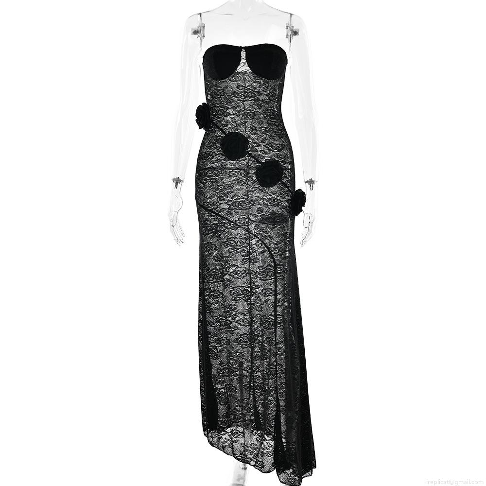 • Women's Sexy Perspective Lace Maxi Dress With 3D Flower Decoration Bodycon Off-Shoulder Long Evening Party Dress For Wedding Guest Beach Vacation