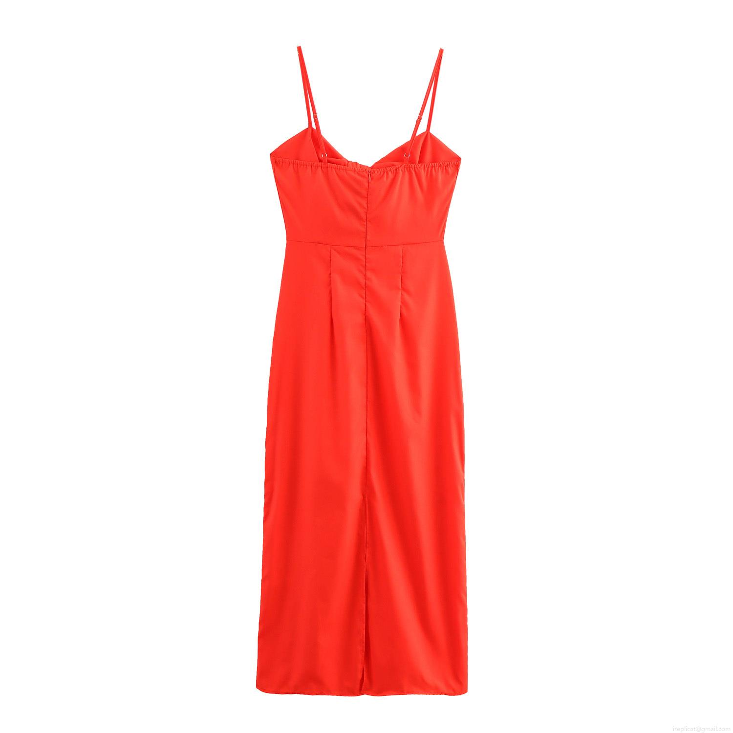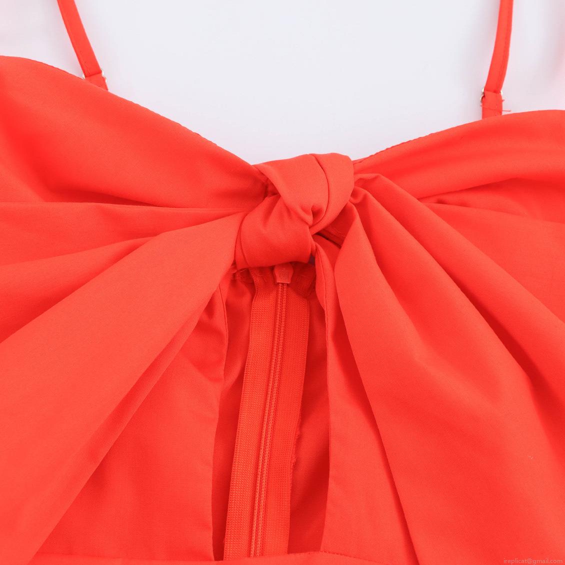 • Women's Sexy Red Cami Maxi Dress With Large Bow Front And Palm Tree Embroidery Sweet Vacation Style Sleeveless Back Zipper Slit Long Dress