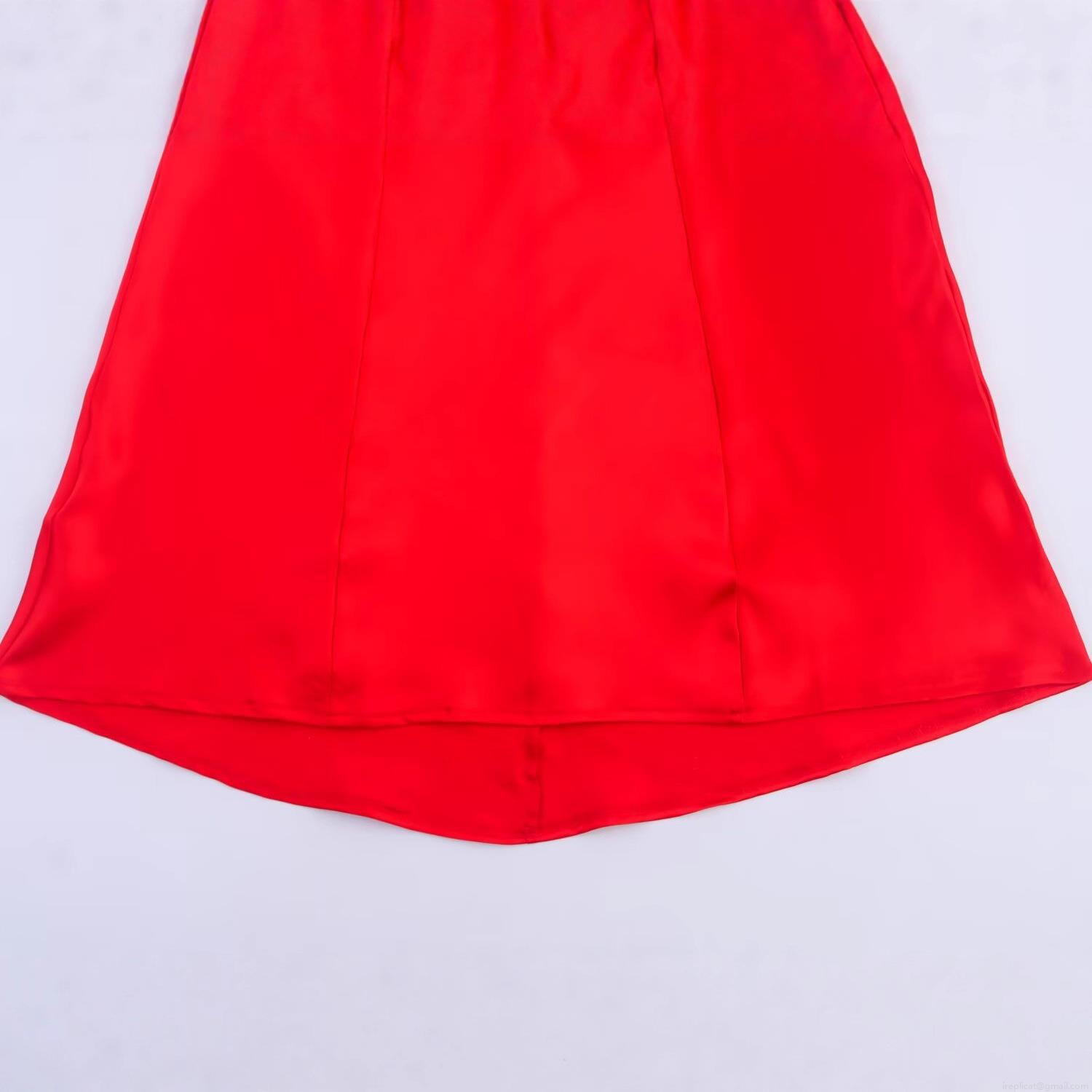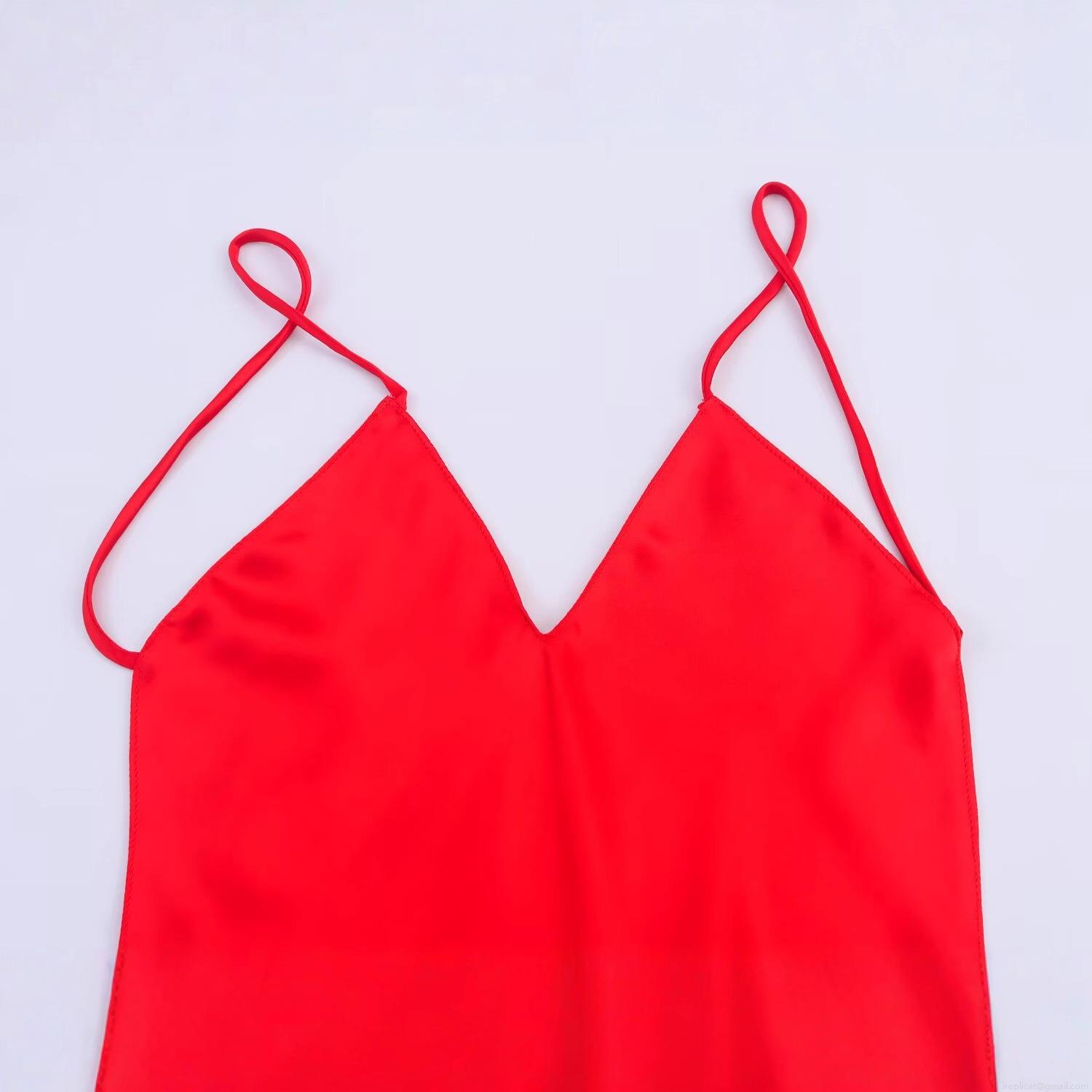 • Women's Sexy Red Satin Backless Cami Maxi Dress V-Neck Silk-Like Polyester Evening Slip Dress Clubwear Party Streetwear For Women
