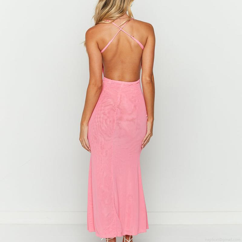 • Women's Sexy Ruched Backless Long Dress Polyester Spandex Slim Fit Cross Strap V-Neck Sleeveless Summer Party Club Bodycon Maxi Dress