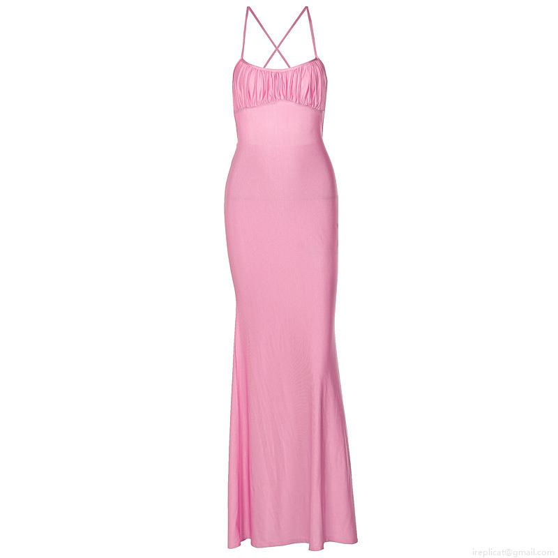 Solid Color, Splice, Pleats, Backless, Cross Straps