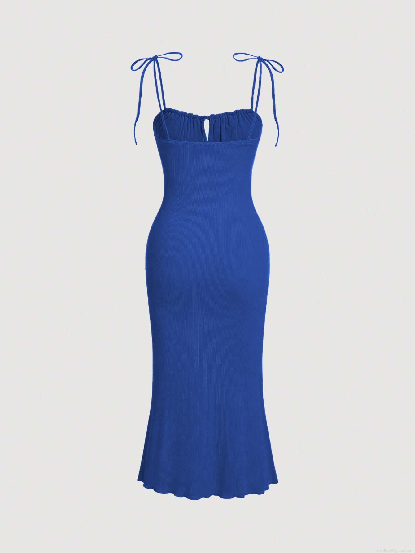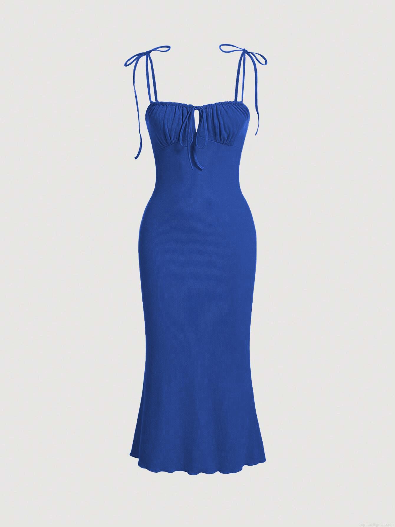 • Women's Sexy Ruched Bust Knit Maxi Dress Viscose Blend Spaghetti Strap Drawstring Lace Up Mermaid Hem Bodycon Long Dress for Party Club Evening