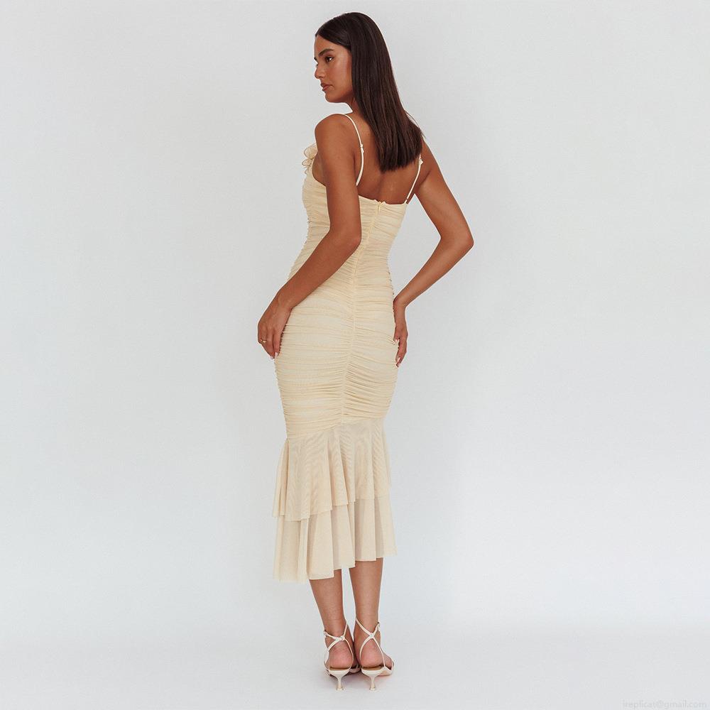 Solid Color, Mermaid Tail, 3d Flowers, Pleats, Ruffles, Backless