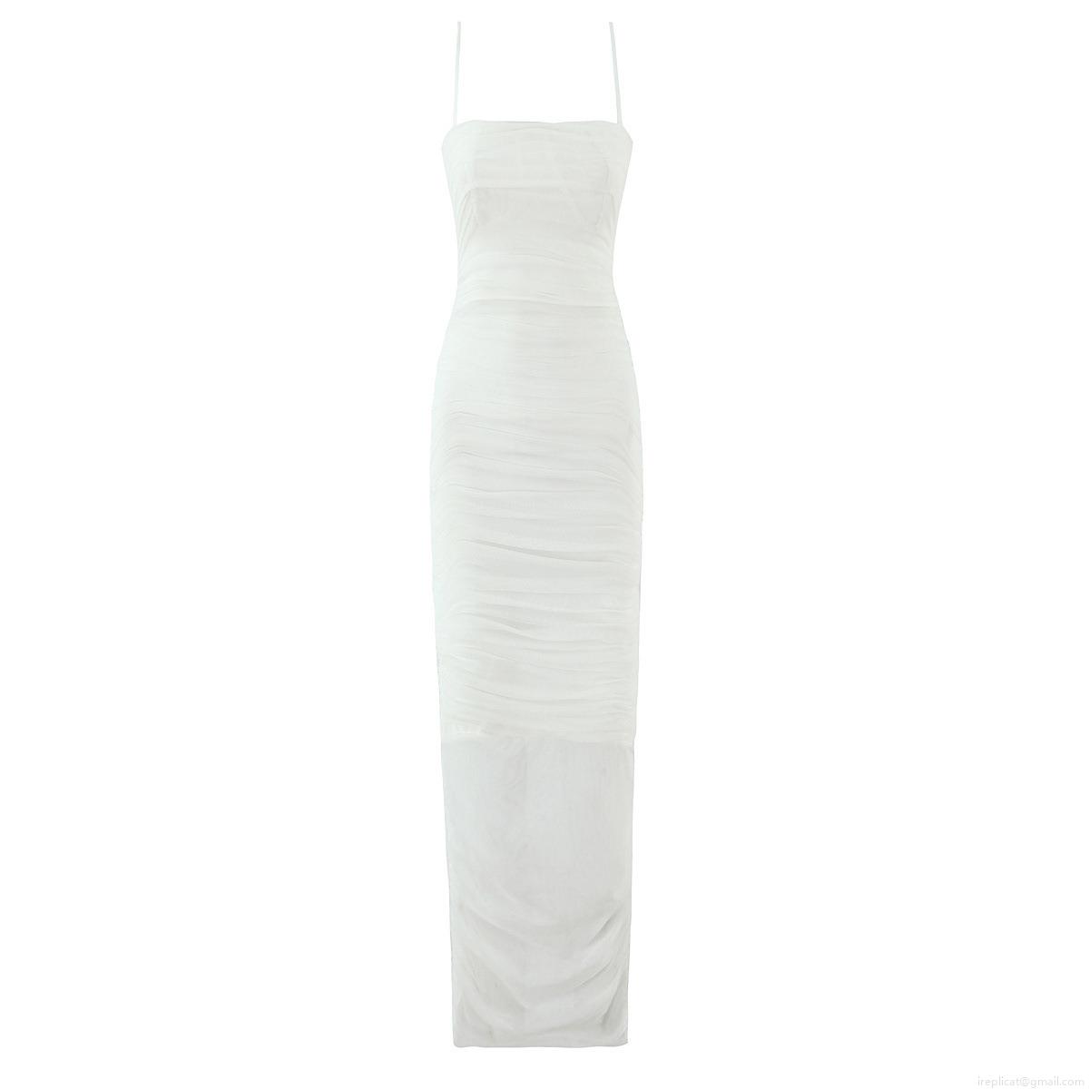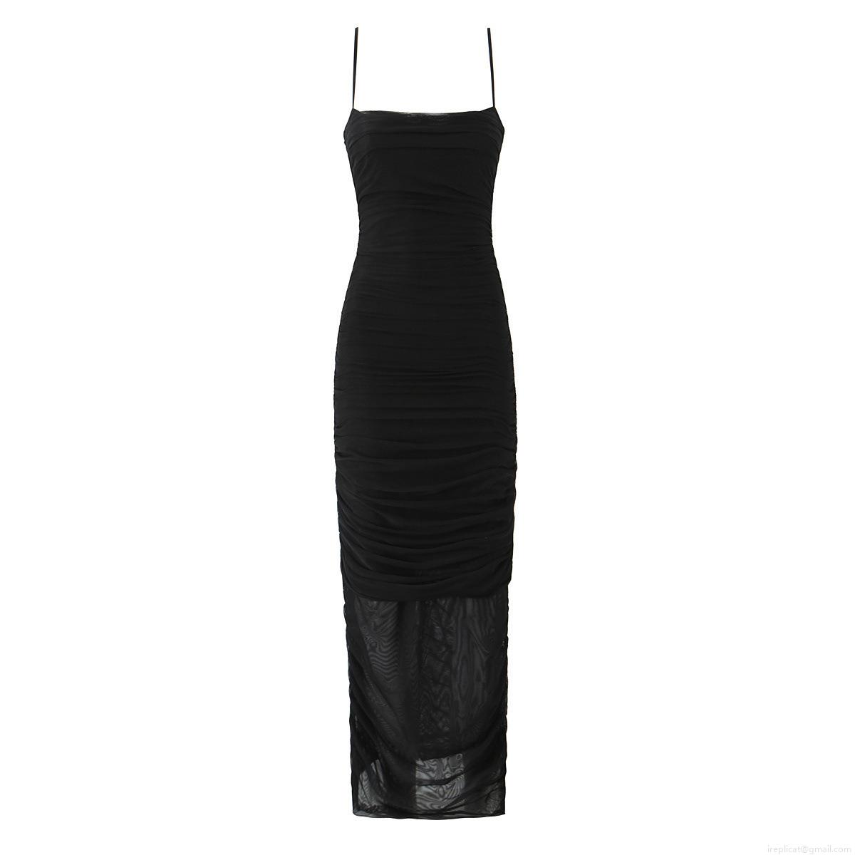 • Women's Sexy Ruched Mesh Maxi Dress Sleeveless Camisole Bodycon Long Dress Solid Color Square Neck Backless Evening Party Clubwear Dress