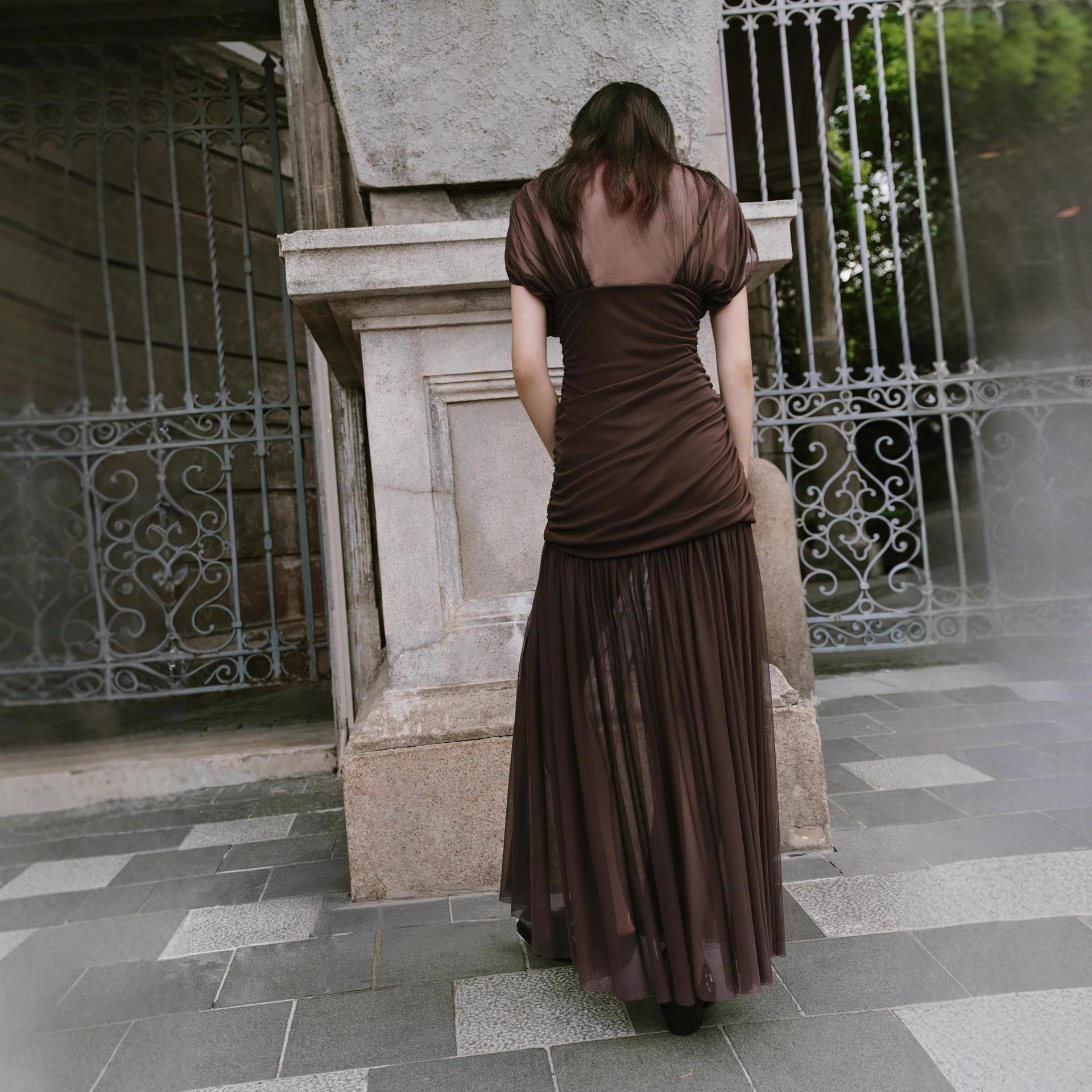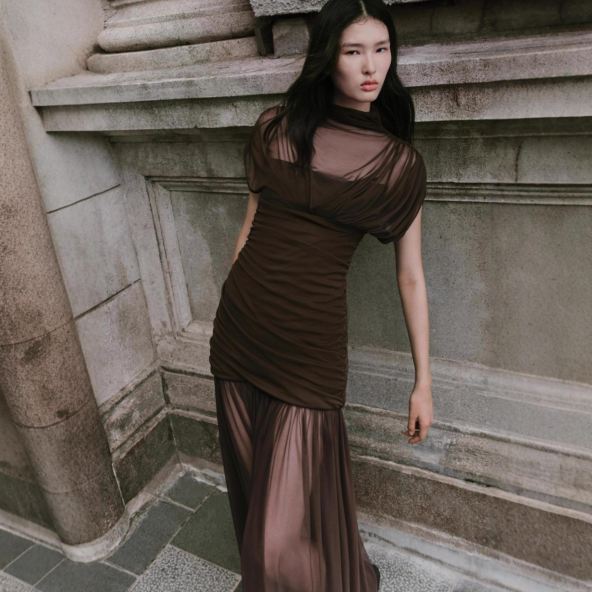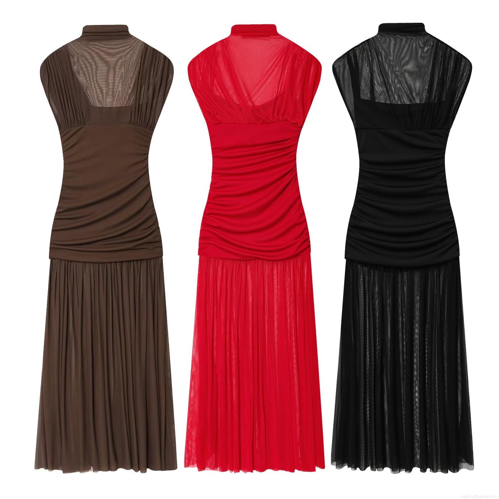 • Women's Sexy Ruched Mesh Maxi Dress Sleeveless Turtleneck Slim Fit Spliced Bodycon Long Dress For Party Evening Banquet Elegant Clubwear