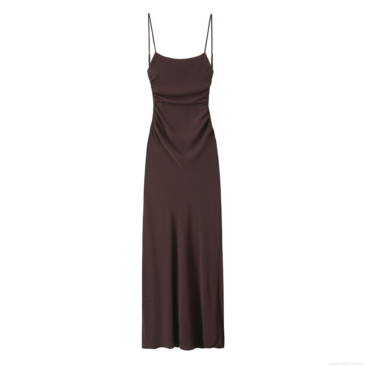 Solid Color, Pleats, Backless, Gathering, Thin Shoulder Straps