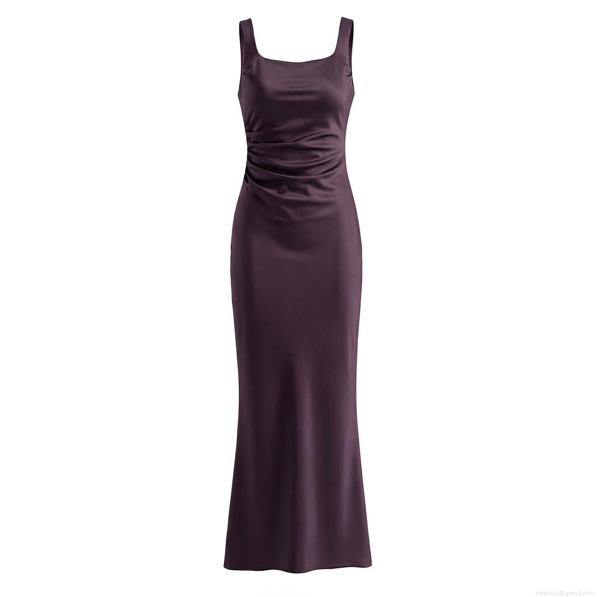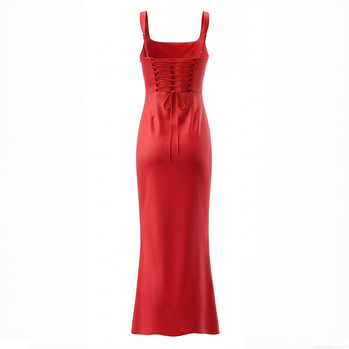 • Women's Sexy Ruched Satin Maxi Dress Backless Lace-up Square Neck Evening Party Fishtail Dress For Women Wedding Guest Banquet Cocktail Long Dress
