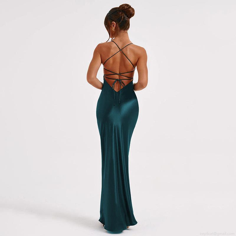• Women's Sexy Satin Cami Maxi Dress Backless Lace Up V Neck Party Evening Dress Solid Color Polyester Satin Bodycon Long Dress For Women