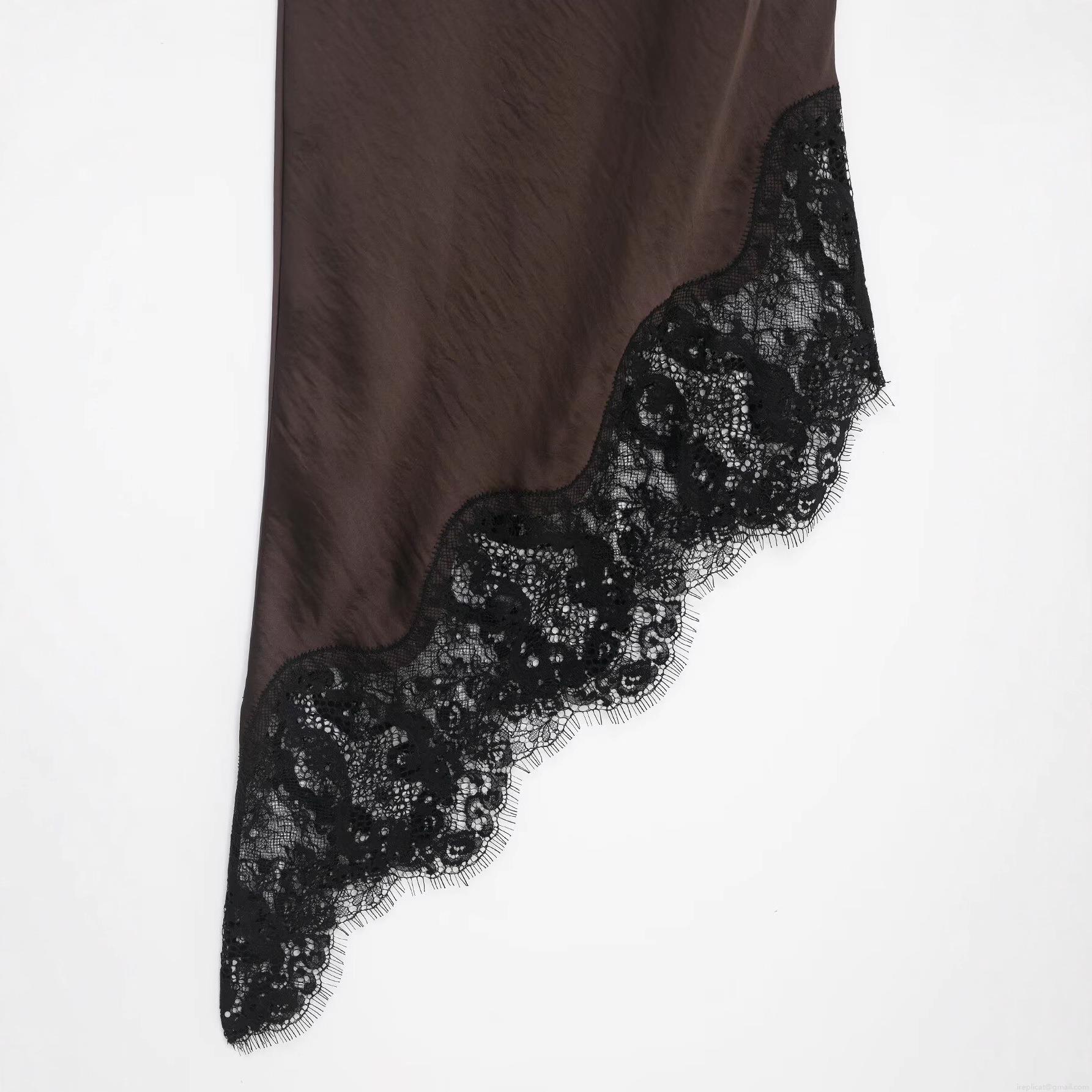 Solid Color, Lace Patchwork, Irregular Hem, Satin Finish, Eyelash Lace