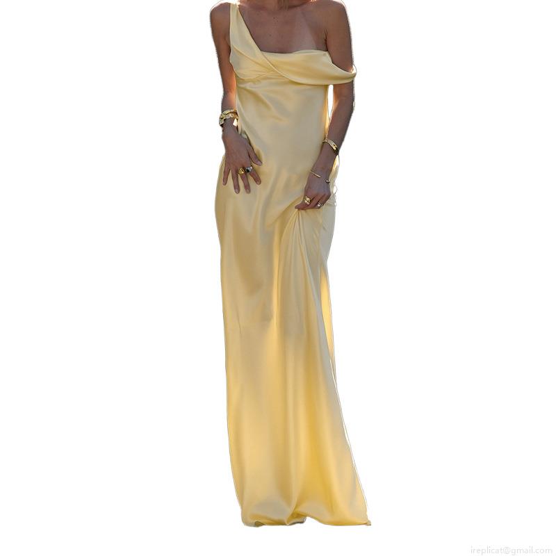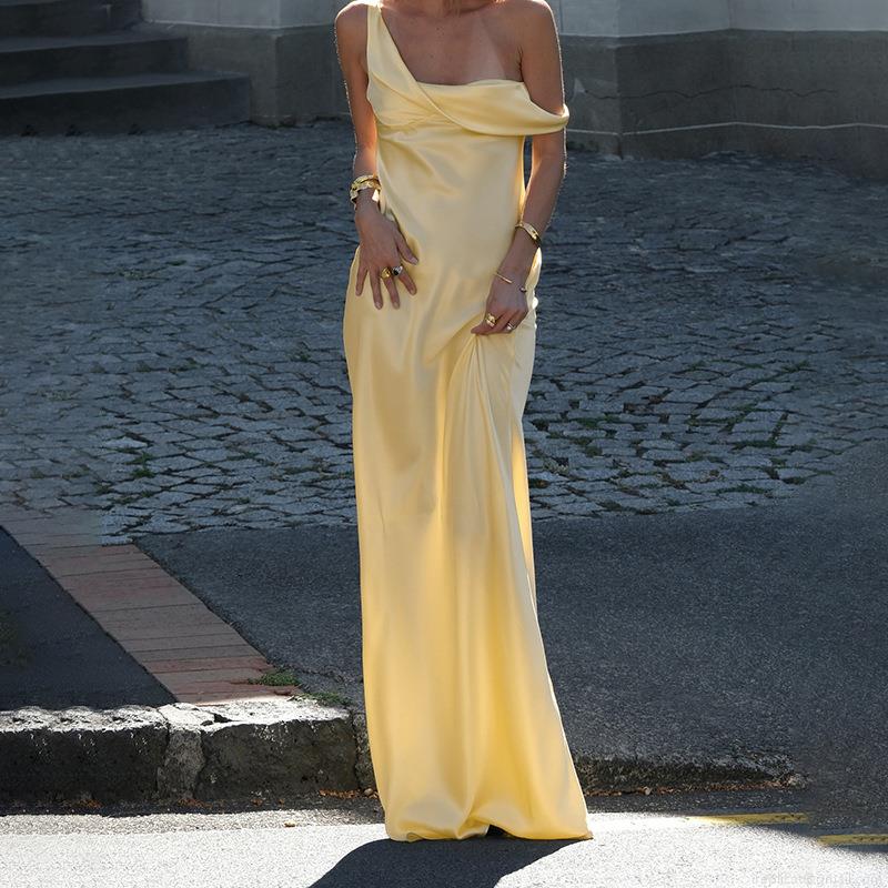 • Women's Sexy Satin Maxi Dress Asymmetric One Shoulder Cowl Neck Sleeveless Bodycon Long Dress Solid Color Elegant Summer Party Vacation Evening Gown