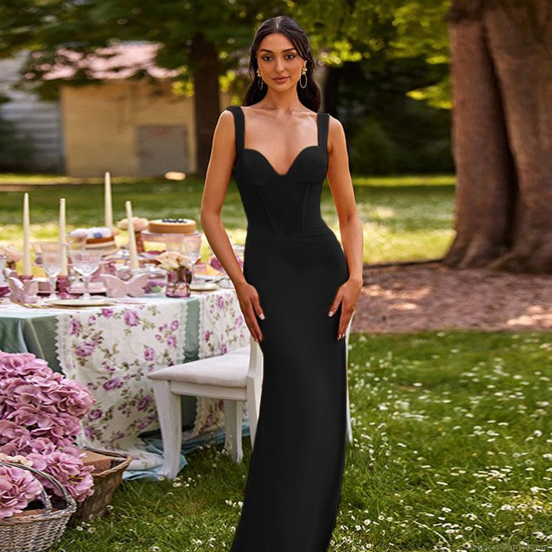 • Women's Sexy Satin V-Neck Spaghetti Strap Backless Maxi Dress Slim Fit Bodycon Fish Tail Evening Gown For Wedding Party Clubwear