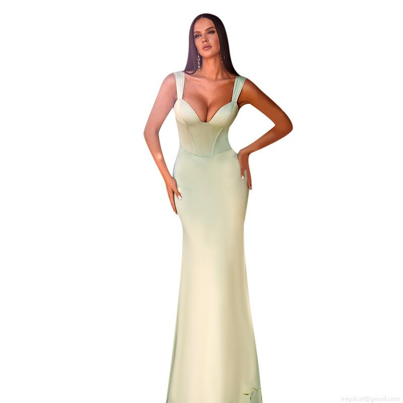 Women's Sexy Satin V-Neck Spaghetti Strap Backless Maxi Dress Slim Fit Bodycon Fish Tail Evening Gown For Wedding Party Clubwear