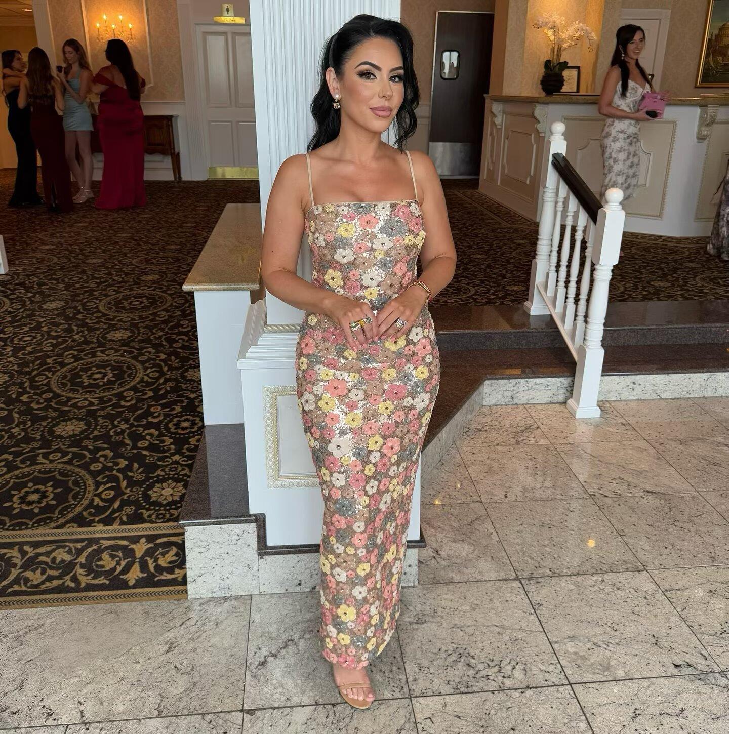 • Women's Sexy Sequin Floral Sling Maxi Dress Elegant Slim Fit Party Evening Long Gown Champagne Sleeveless Celebrity Style Dresses
