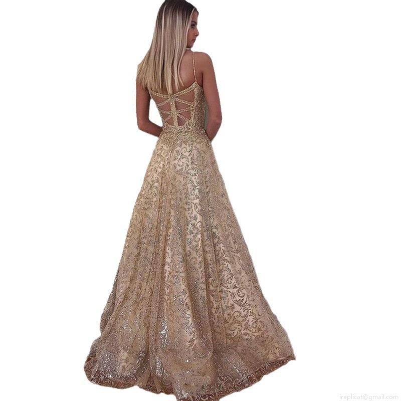• Women's Sexy Sequin Maxi Dress Deep V Neck Sleeveless Backless Cross Straps Long Evening Party Dress Gold Glitter Embroidery Lace Formal Gown for Wedding Banquet Prom Lady