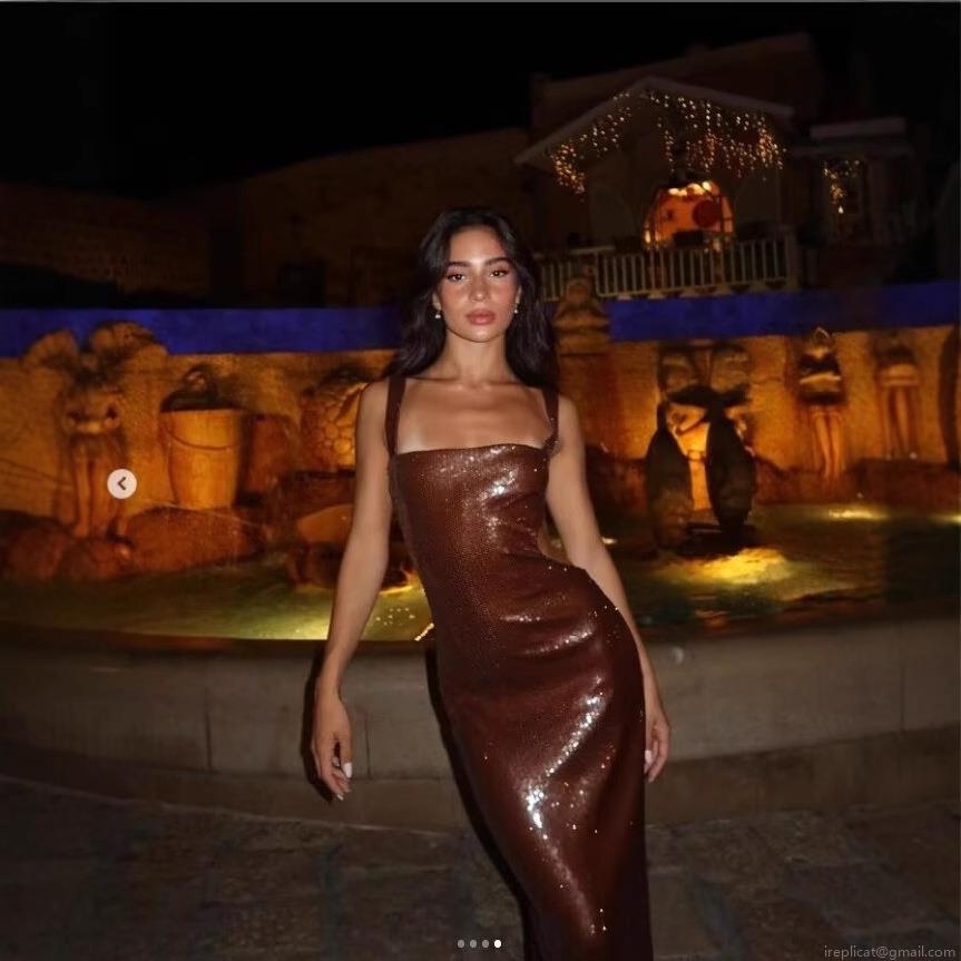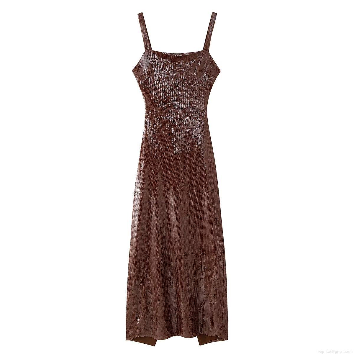 • Women's Sexy Sequin Polyester Camisole Dress Open Back Cutout High Waist Bodycon Maxi Dress For Evening Party Clubwear Brown Slim Fit Long Gown