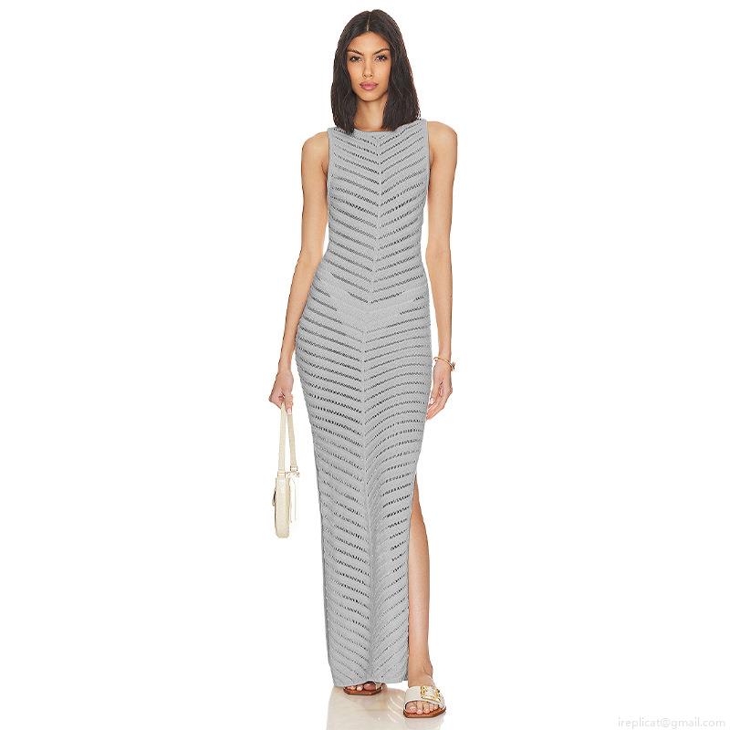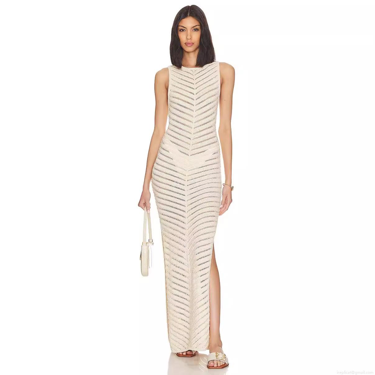 Women's Sexy Sleeveless Knit Maxi Dress Elegant Side Slit High Waist Bodycon Crochet Long Dress Solid Color Summer Party Beach Dress