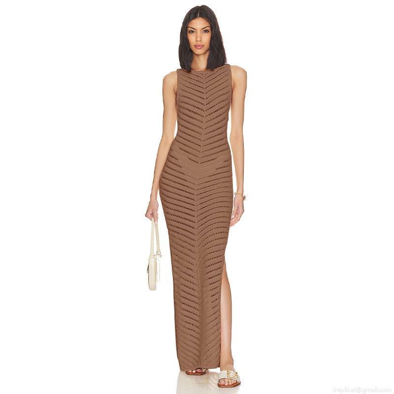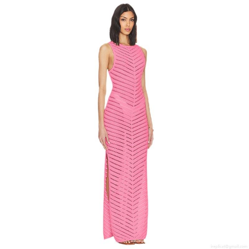 • Women's Sexy Sleeveless Knit Maxi Dress Elegant Side Slit High Waist Bodycon Crochet Long Dress Solid Color Summer Party Beach Dress