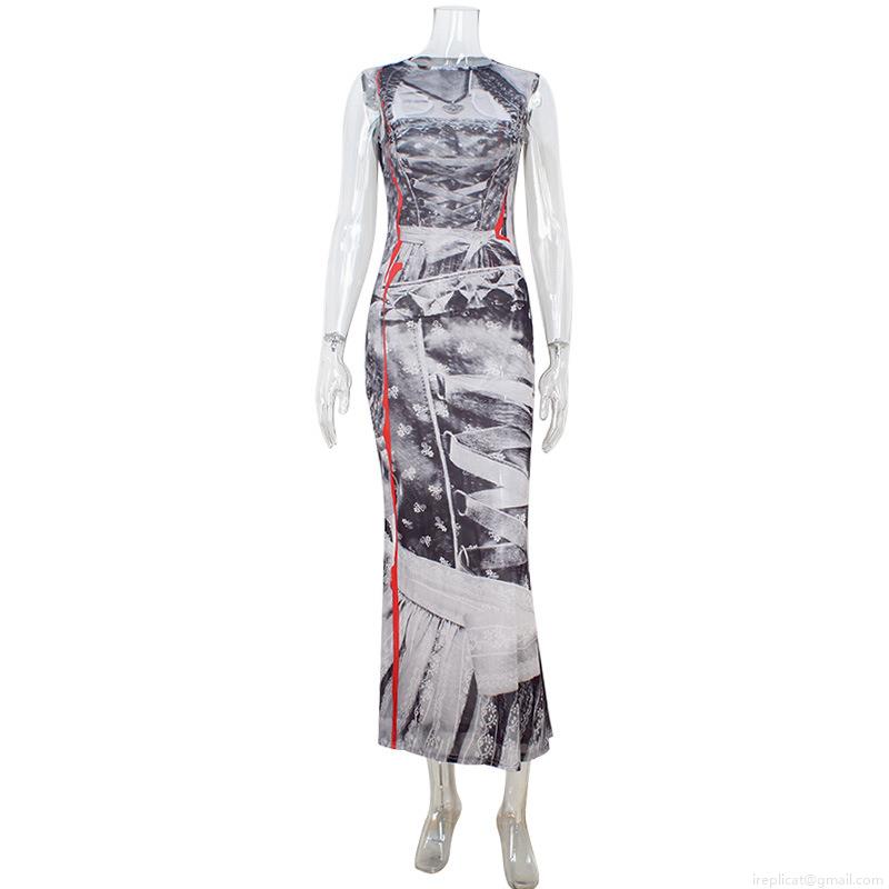 • Women's Sexy Sleeveless Maxi Dress 3D Funny Cat Animal Print Trompe L'oeil Corset Graphic Slim Fit Bodycon Long Pencil Dress Polyester Spandex Chic Streetwear Party Wear