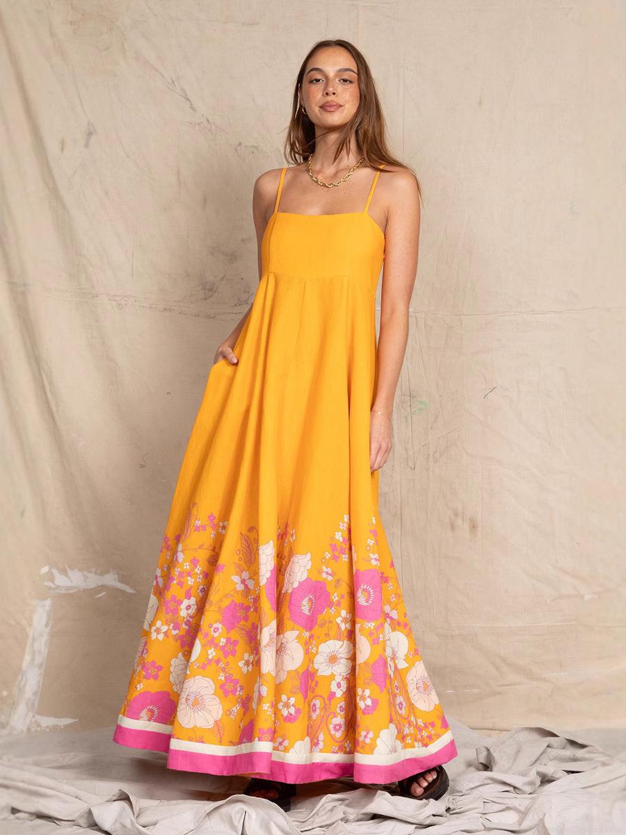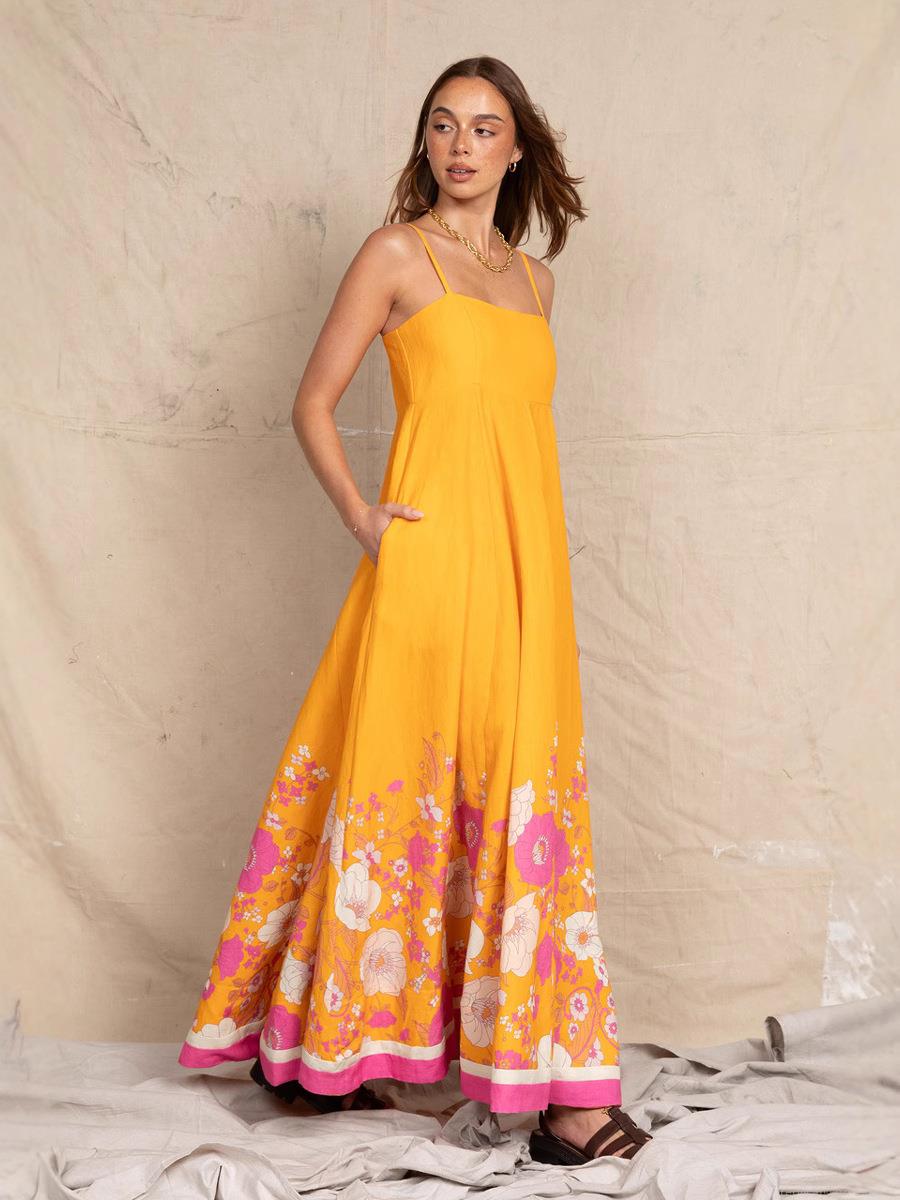 • Women's Sexy Spaghetti Strap Floral Print Maxi Dress Polyester Spandex High Waist Sleeveless Long Dress For Beach Vacation Summer Party Sexy Style