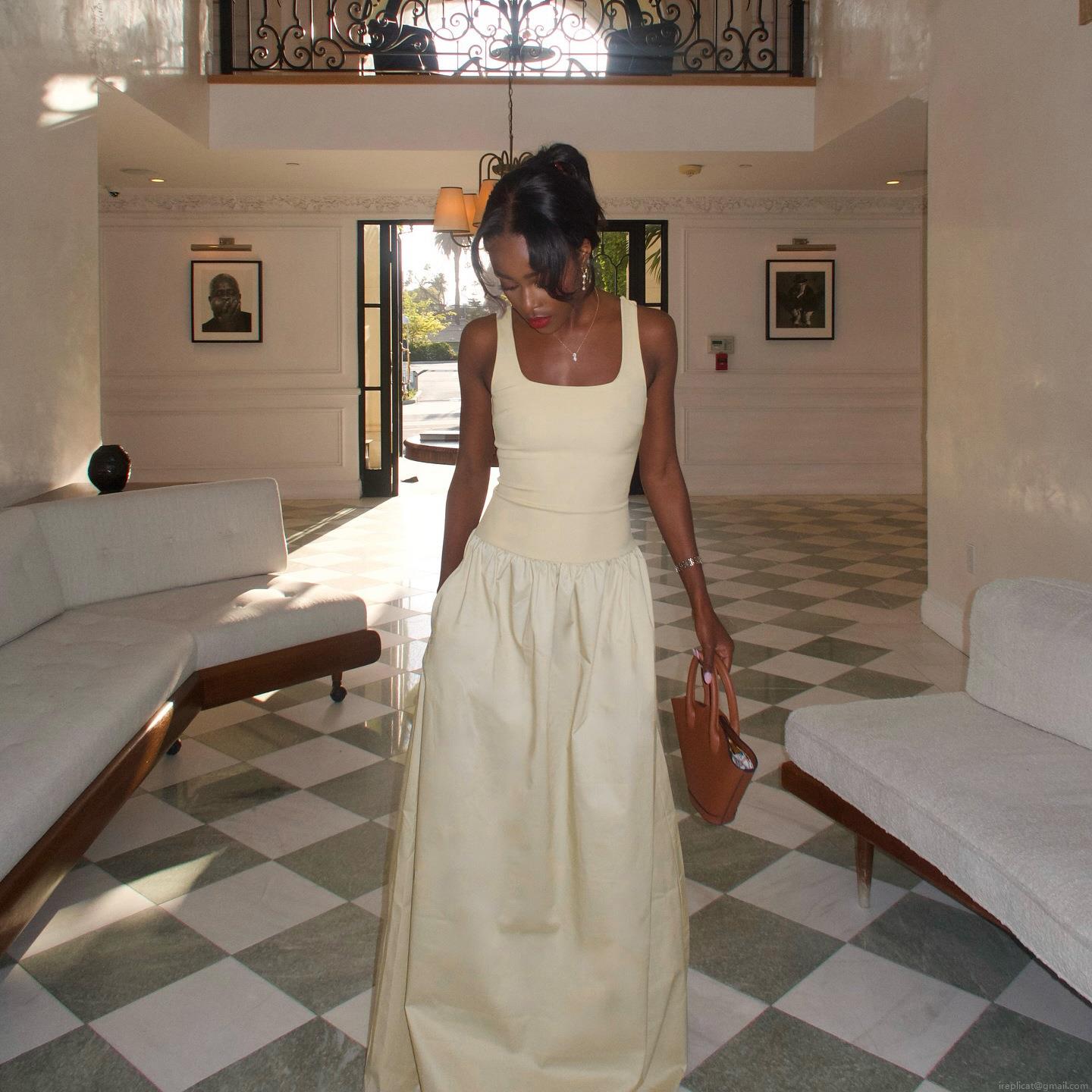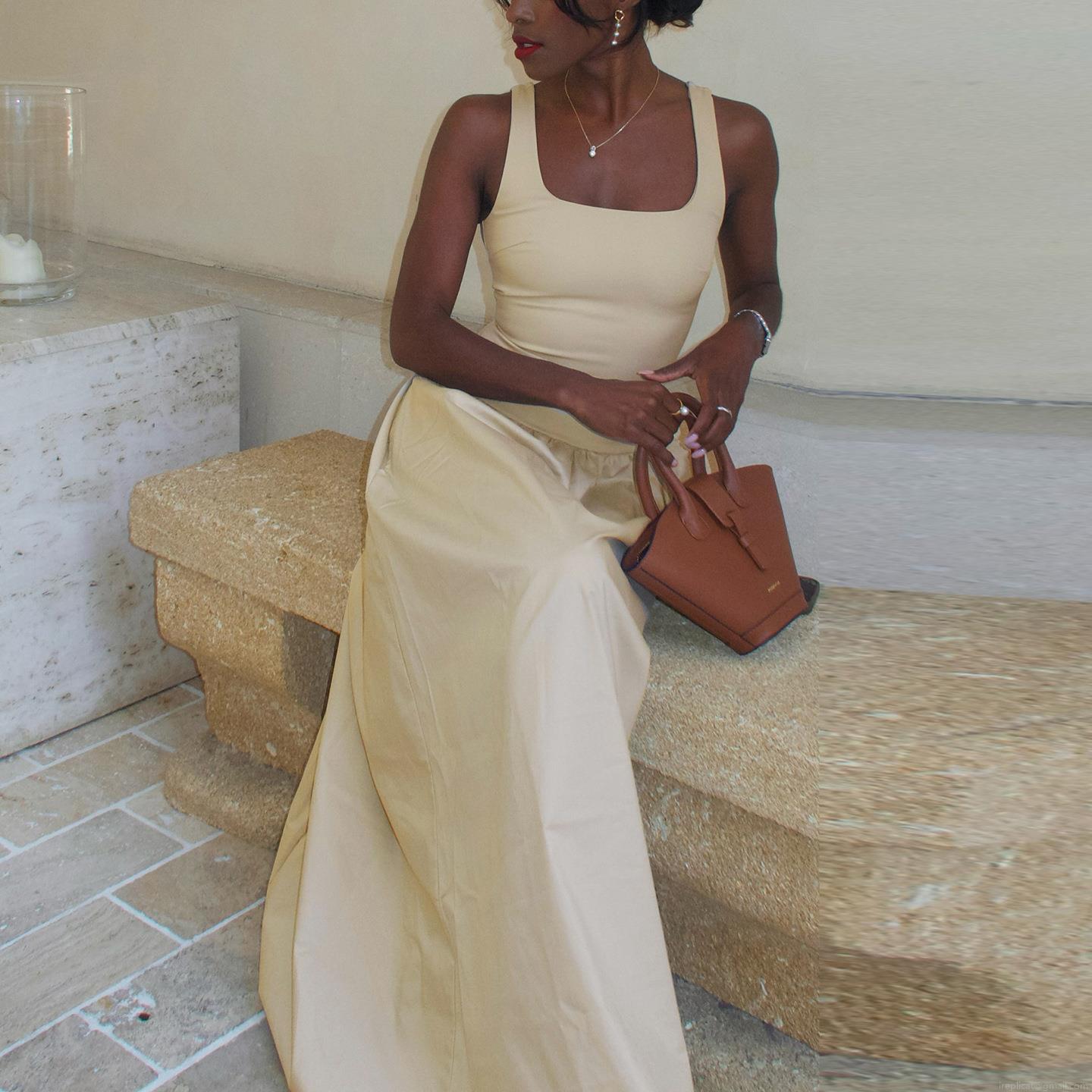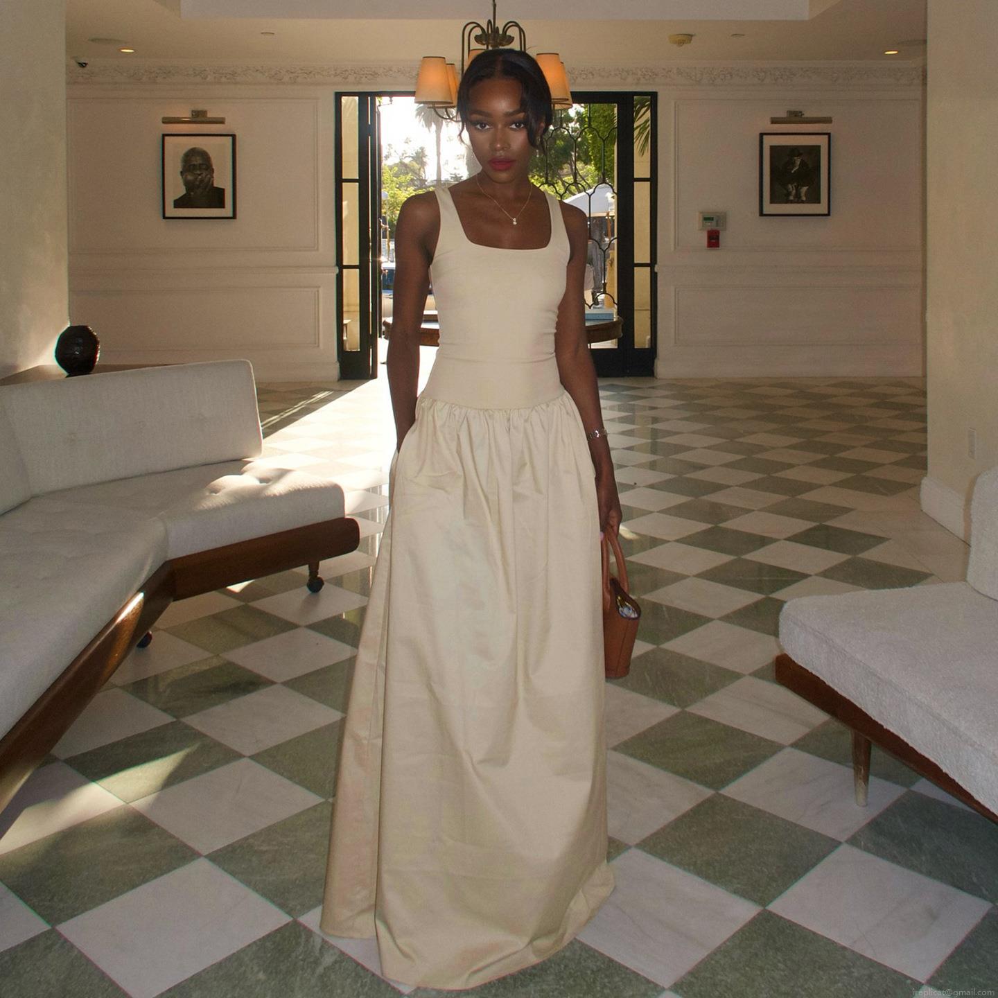 • Women's Sexy Square Neck Sleeveless Maxi Dress Slim Fit Backless A-Line Long Dress Solid Color Elegant Party Clubwear Sundress