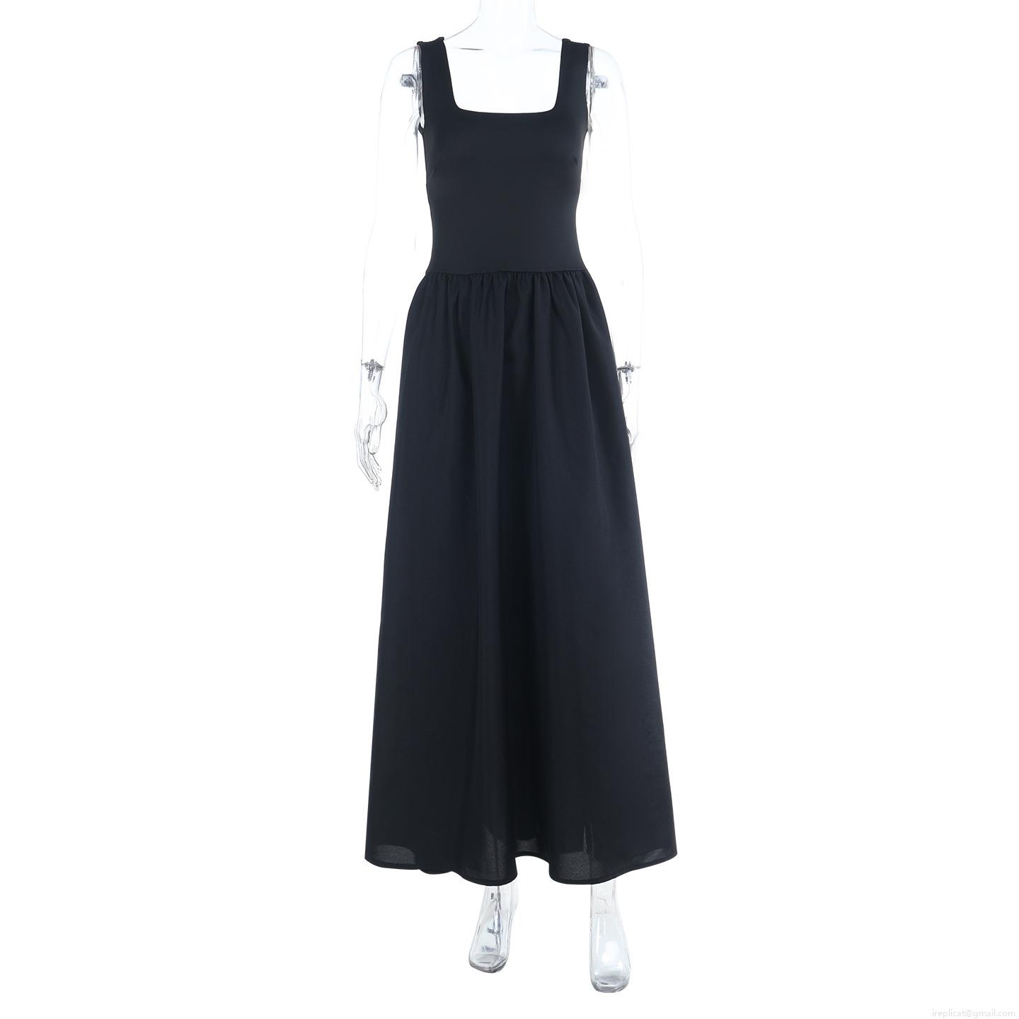 Solid Color, Splice, Backless, Sleeveless, Square Collar, A Pendulum
