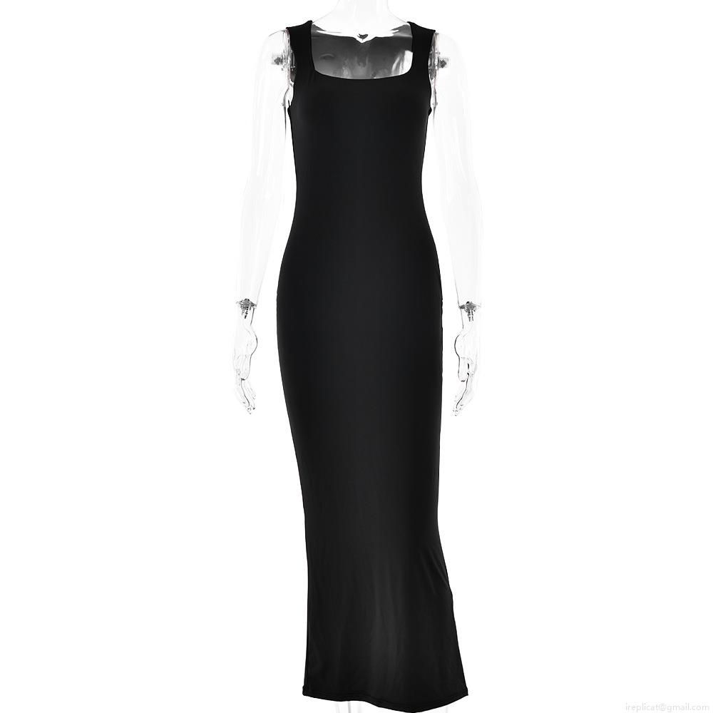 • Women's Sexy Square Neck Sleeveless Maxi Dress Solid Color Slim Fit Bodycon Milk Silk Long Dress For Summer Party Club Night Out Outfits