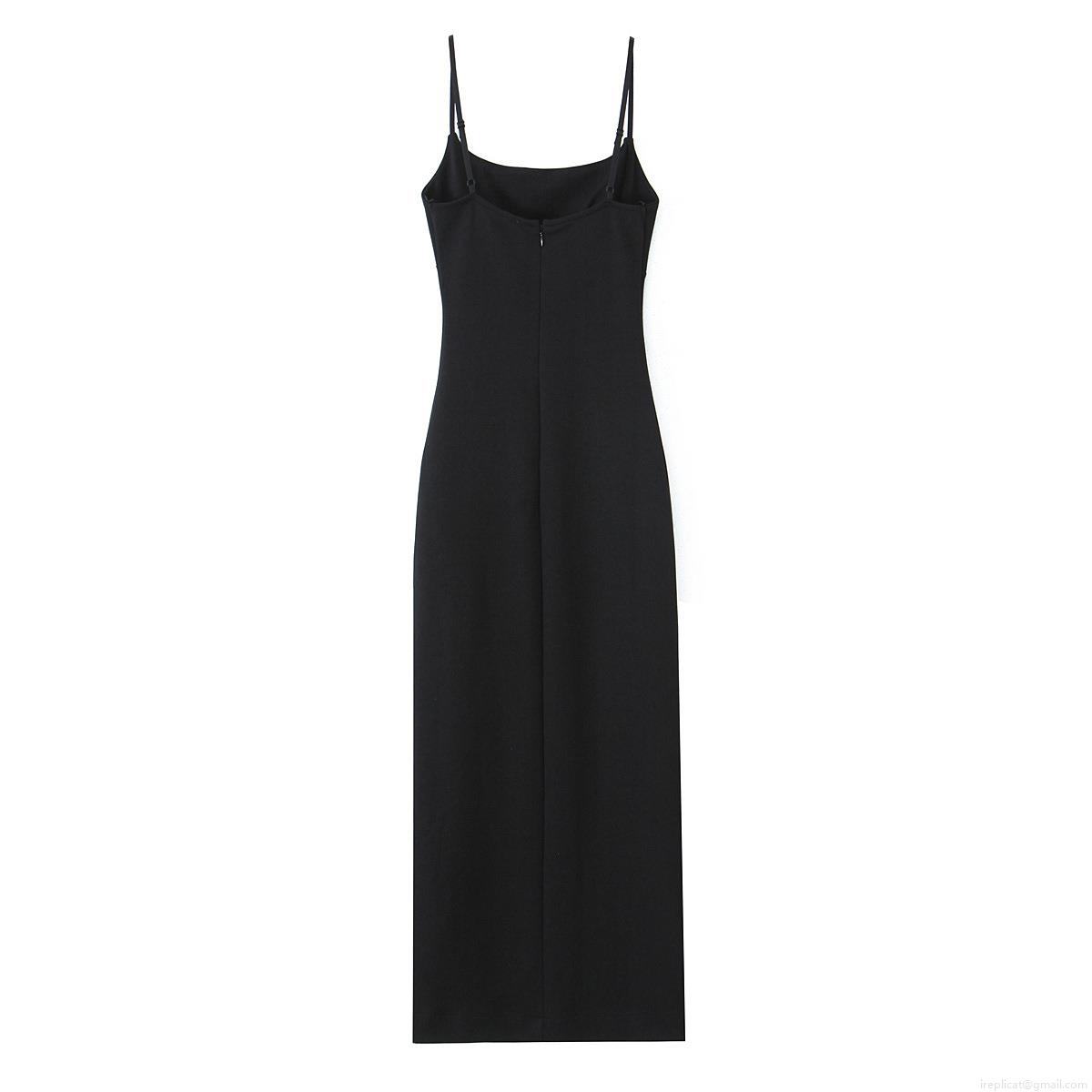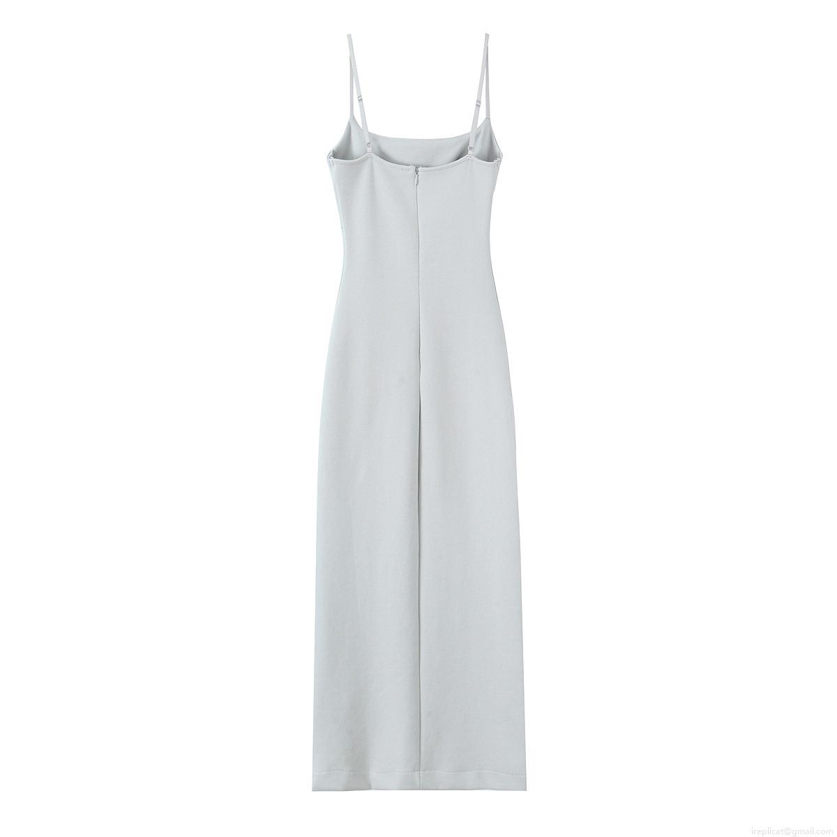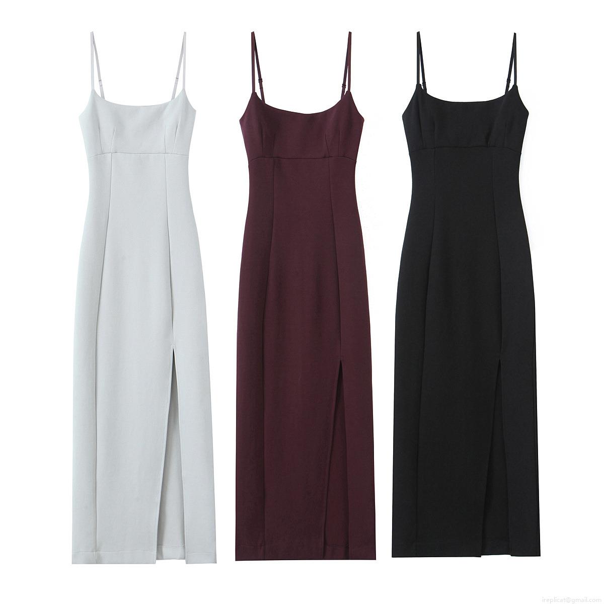 Solid Color, Side Fork, Square Collar, Thin Straps, Slim Fit