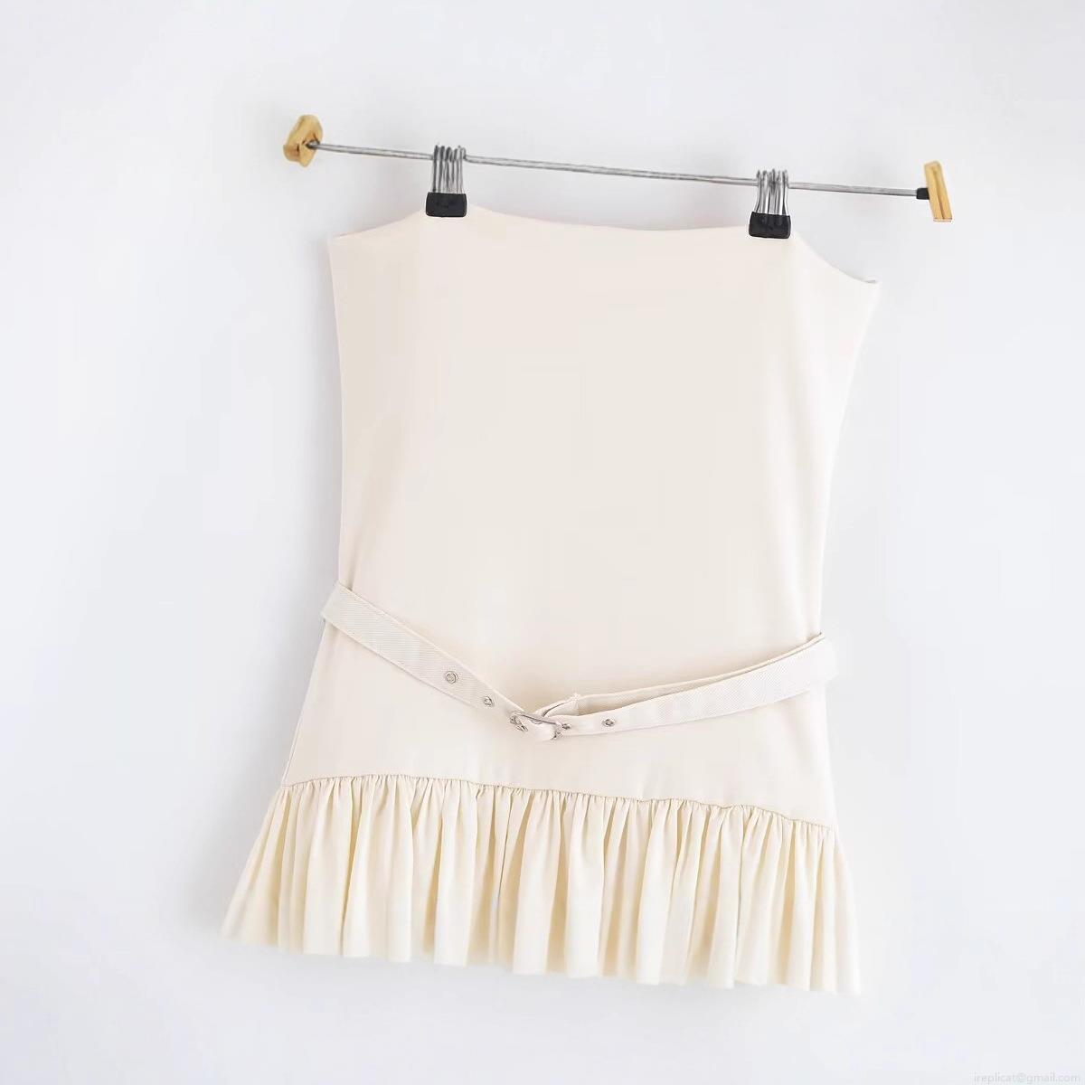Solid Color, Splice, Pleats, Belt, Backless, Strapless