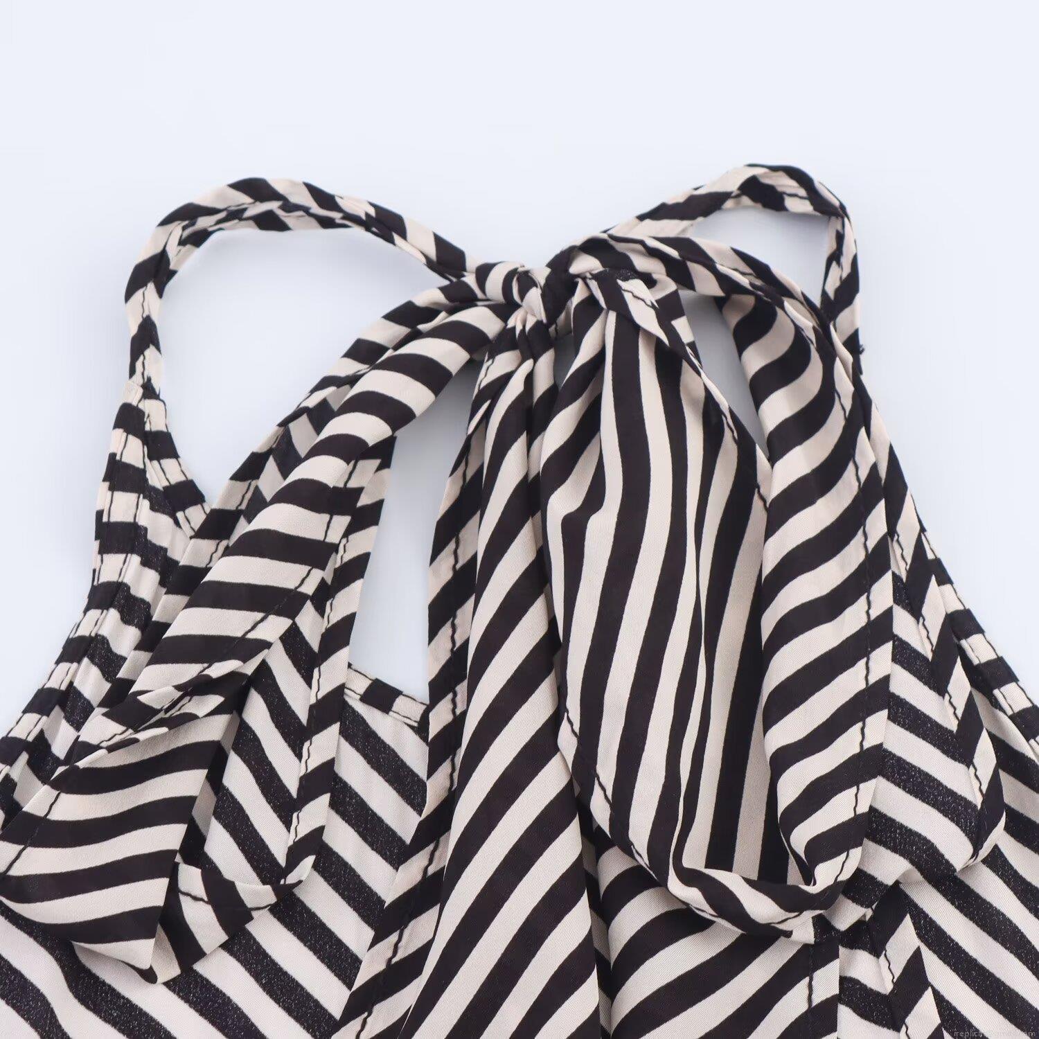 • Women's Sexy Striped Halter Neck Maxi Dress Backless Satin Polyester Sleeveless Bodycon Color Block Party Clubwear Western Style Streetwear Long Dress