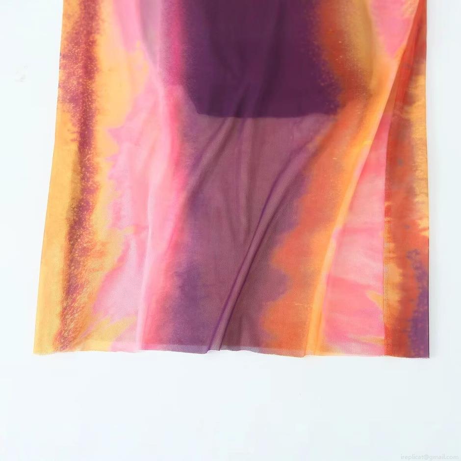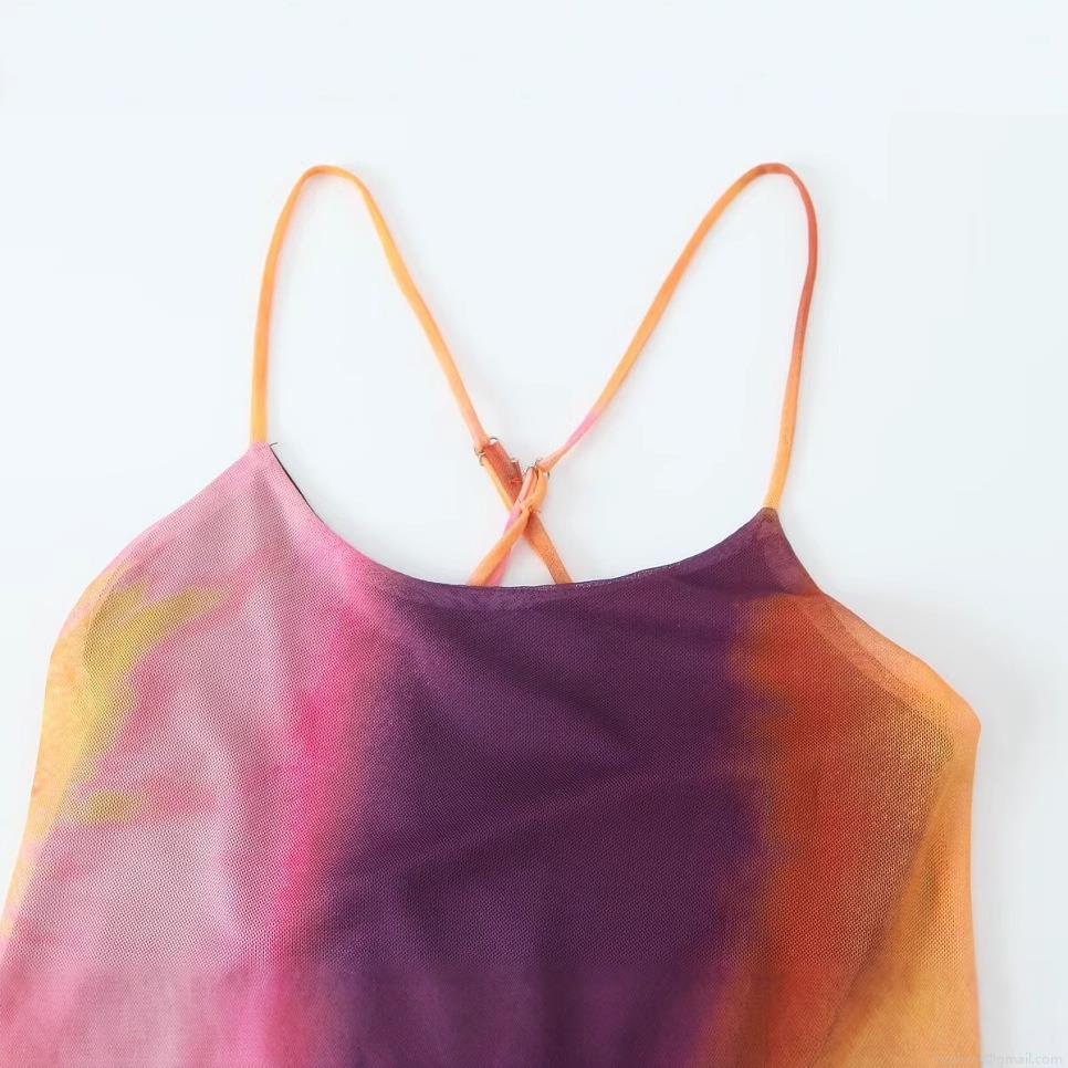 Tie Dye, Gradient, Translucent, Mesh, Ink Painting, Backless, Forked, Cross Shoulder Straps