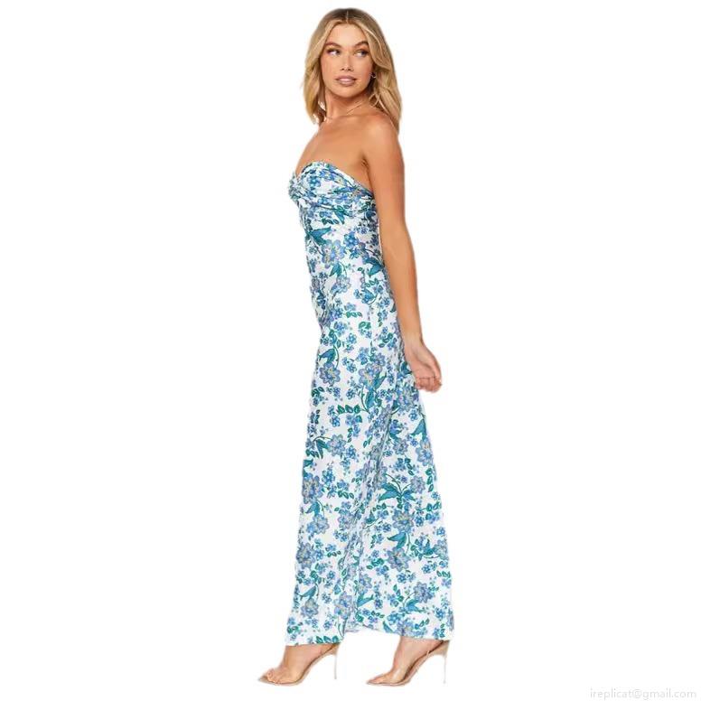 • Women's Sexy Tube Top Floral Print Backless Maxi Dress Slim Fit Polished Milk Silk Bodycon Long Dress For Summer Vacation Party