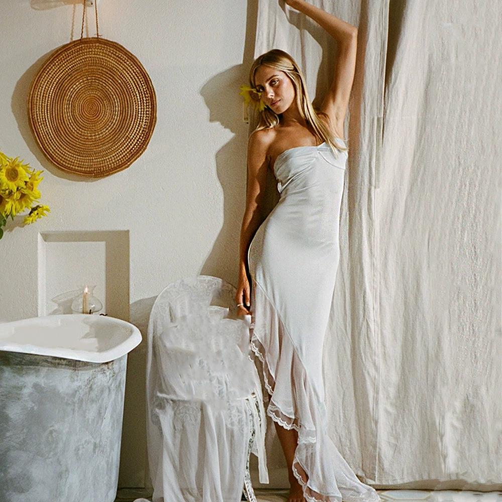 Women's Sexy Tube Top Irregular Hem Maxi Dress Polyester Mesh Lace Backless Bodycon Dress For Party Club Streetwear Y2K Chic