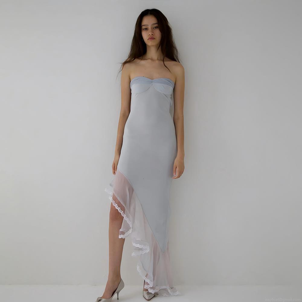• Women's Sexy Tube Top Irregular Hem Maxi Dress Polyester Mesh Lace Backless Bodycon Dress For Party Club Streetwear Y2K Chic