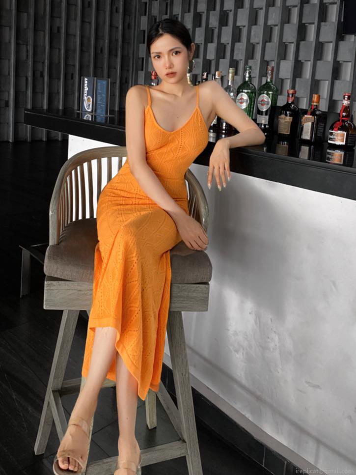 Solid Color, Mermaid Tail, Diamond Pattern, Hollow Out, V-neck, Suspenders, Side Fork, Crochet Knitting