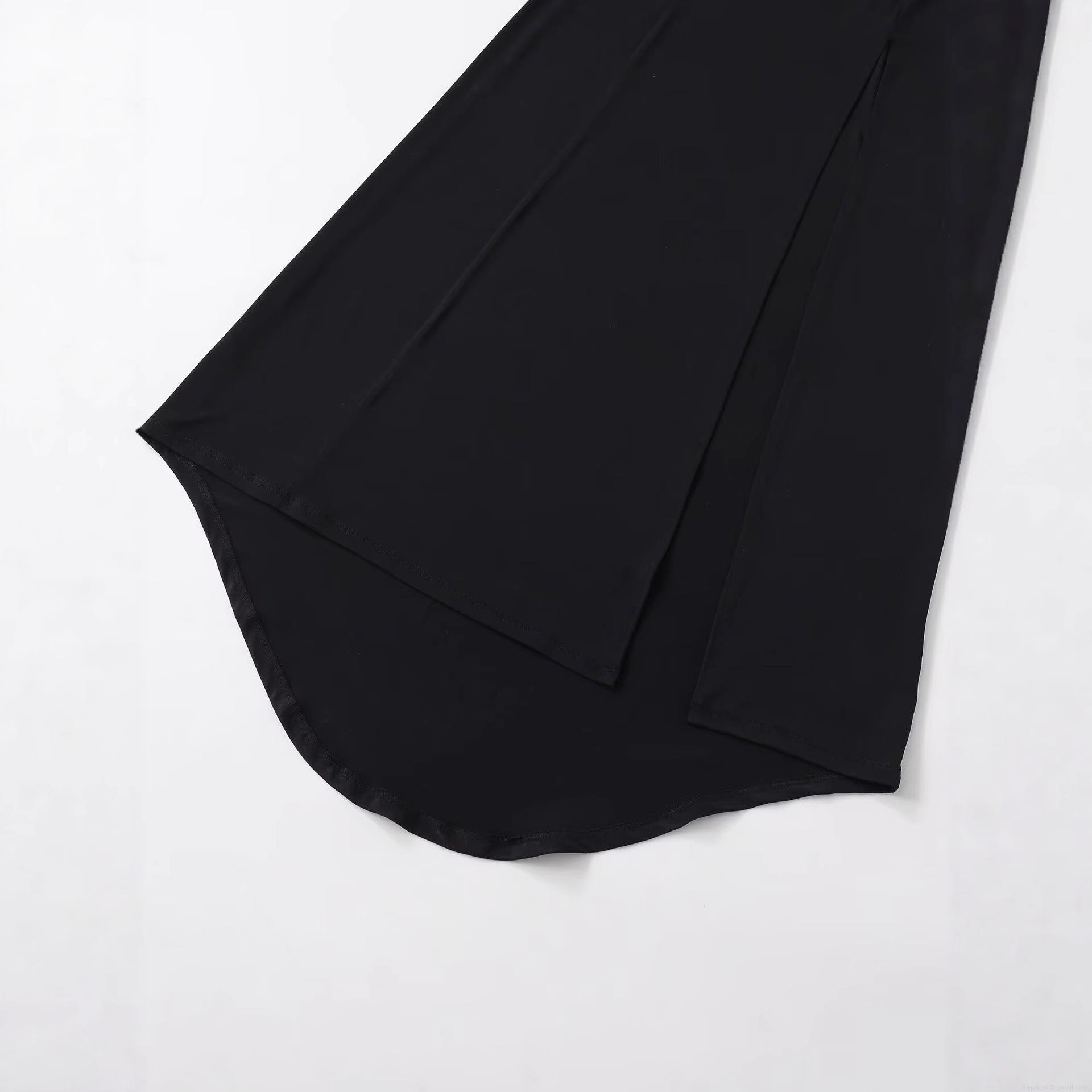 • Women's Sexy V Neck Strappy Maxi Dress Polyester Blend Side Slit Pleated Backless Long Dress For Party Evening Night Club Elegant Black Solid Color Gown