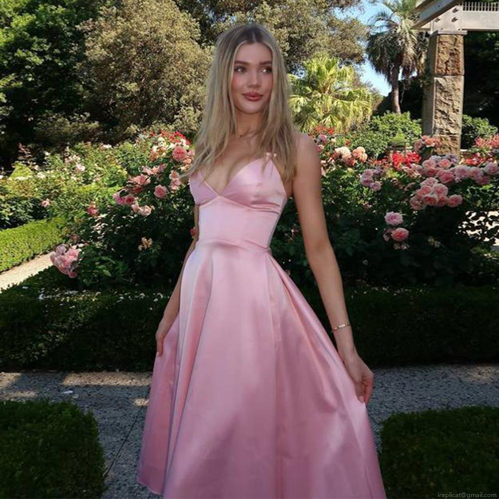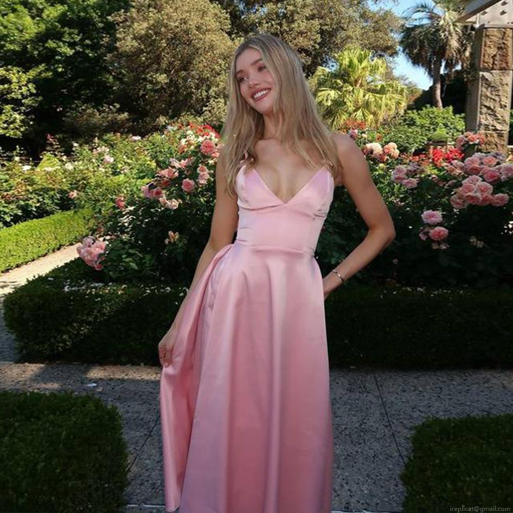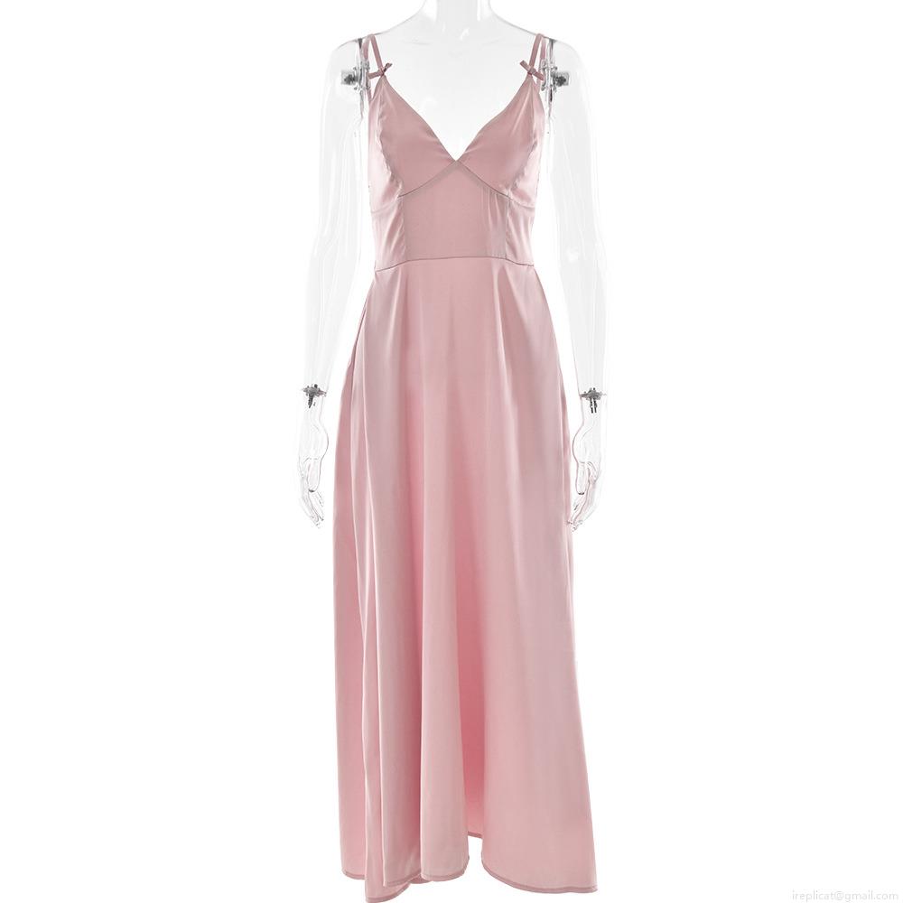 • Women's Sexy V-Neck Backless Satin Maxi Dress Spaghetti Strap Sleeveless A-Line Evening Gown For Wedding Party Cocktail Night Out Pink Polyester Satin Long Dress