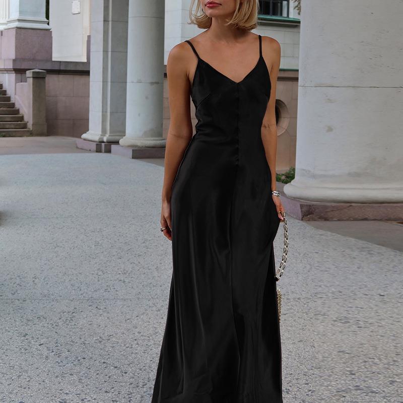 Women's Sexy V-Neck Backless Satin Spaghetti Strap Bodycon Maxi Dress Elegant Wedding Party Evening Slip Gown Polyester Spandex