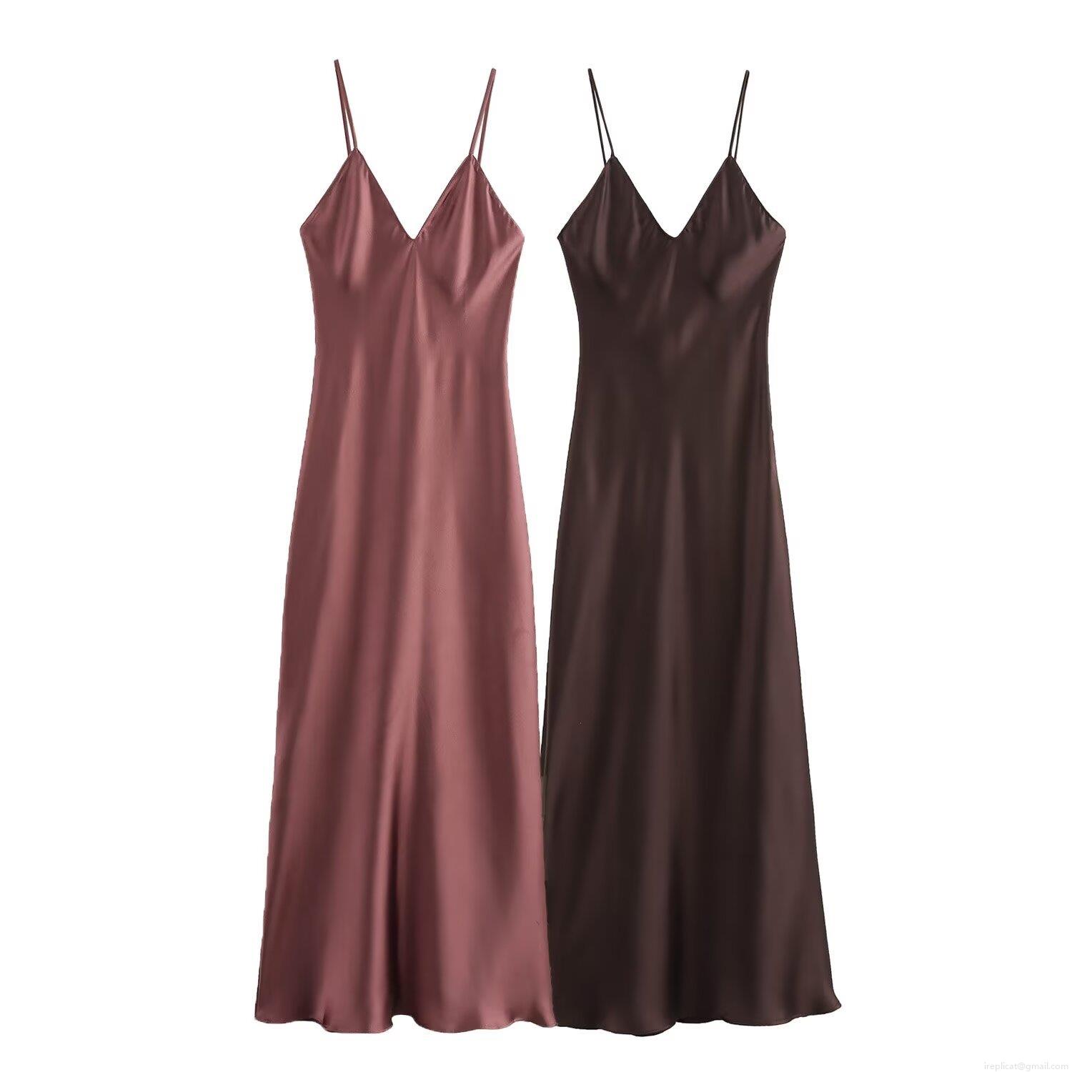 • Women's Sexy V-Neck Satin Cami Maxi Dress Elegant Backless Spaghetti Strap Evening Party Long Dress Solid Color Silk Like Bodycon Slip Dress