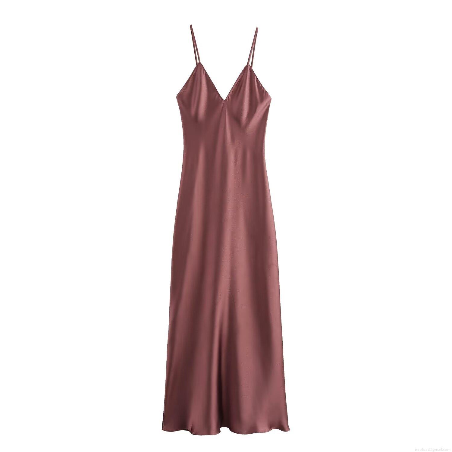 Solid Color, Splice, V-neck, Backless, Satin Luster, Ultra-thin Straps