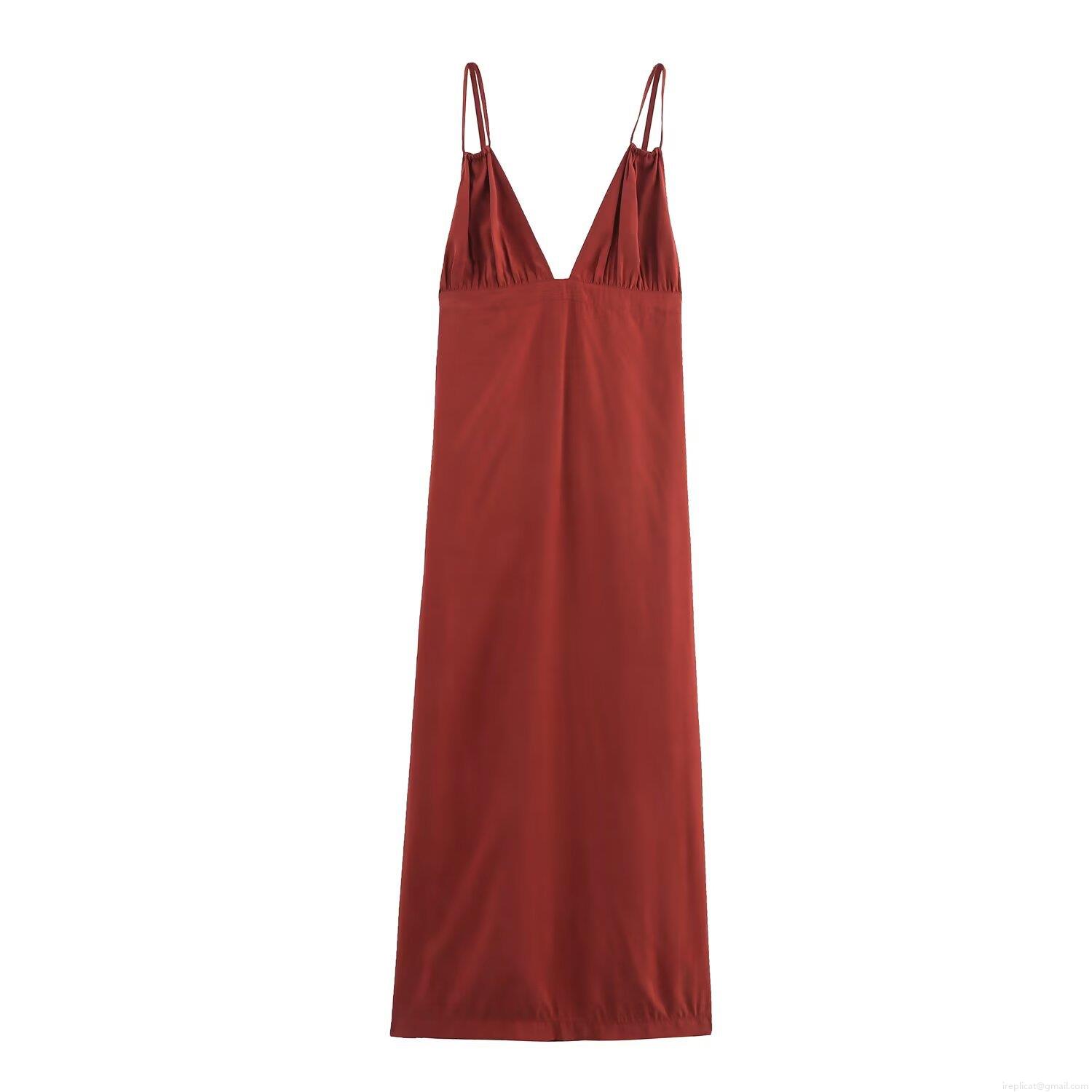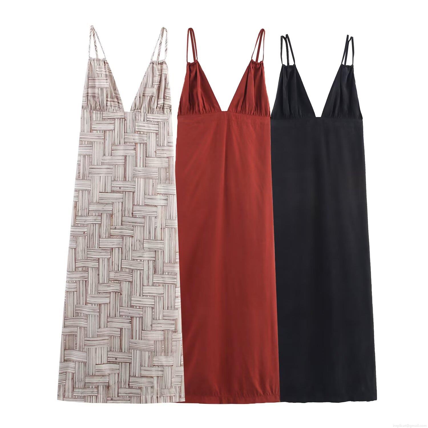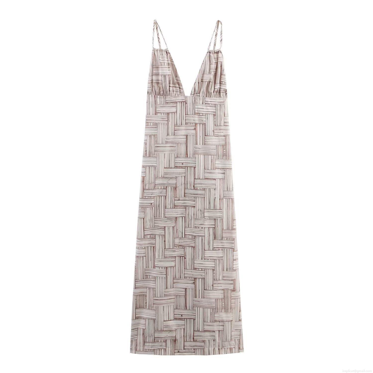 Solid Color, Pleats, Geometric Patterns, V-neck, Backless, Thin Shoulder Straps, Abstract Stripes
