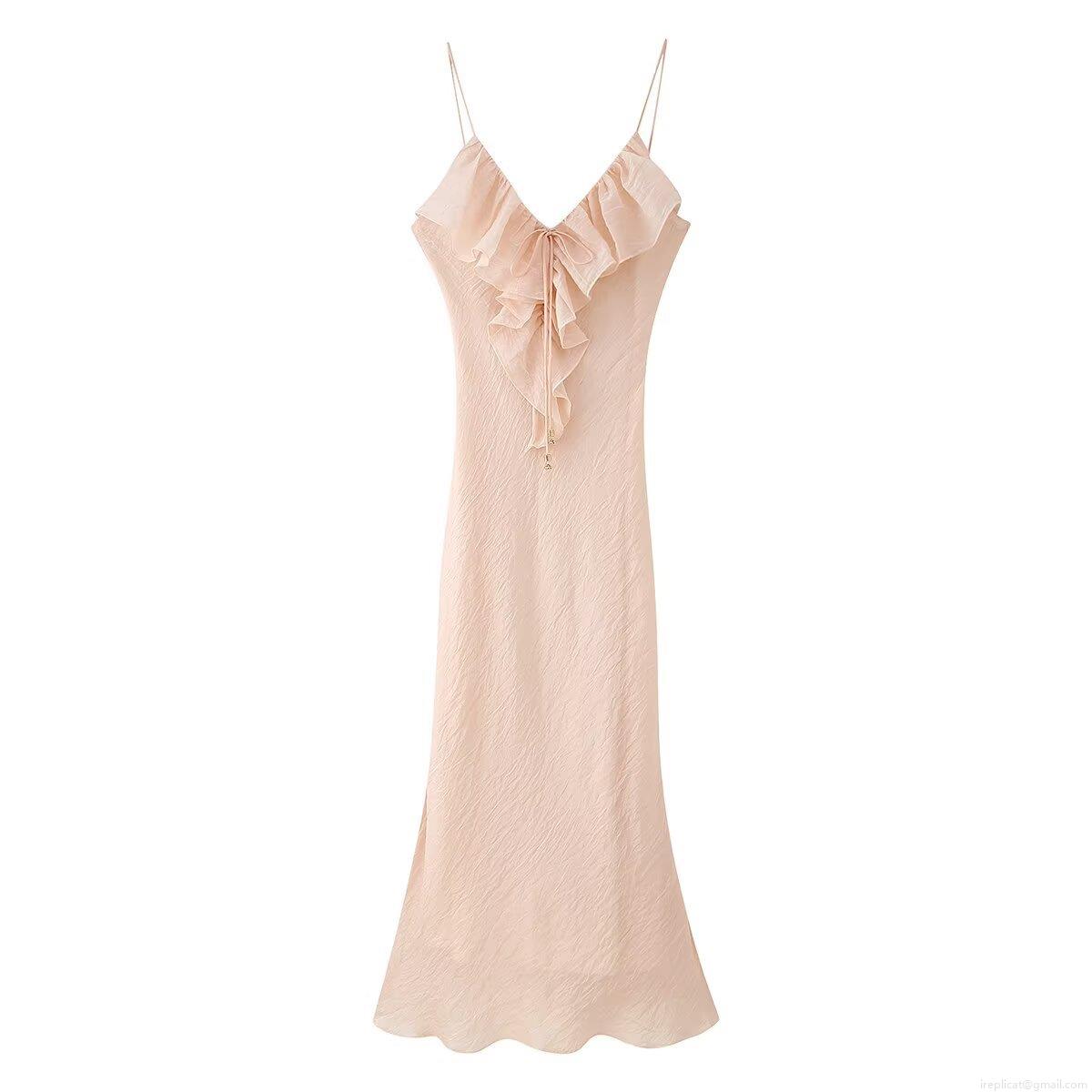 • Women's Sexy V-Neck Tiered Ruffle Cami Maxi Dress Elegant Sleeveless Solid Color Satin-Like Pullover Long Dress For Summer Party Dating Vacation