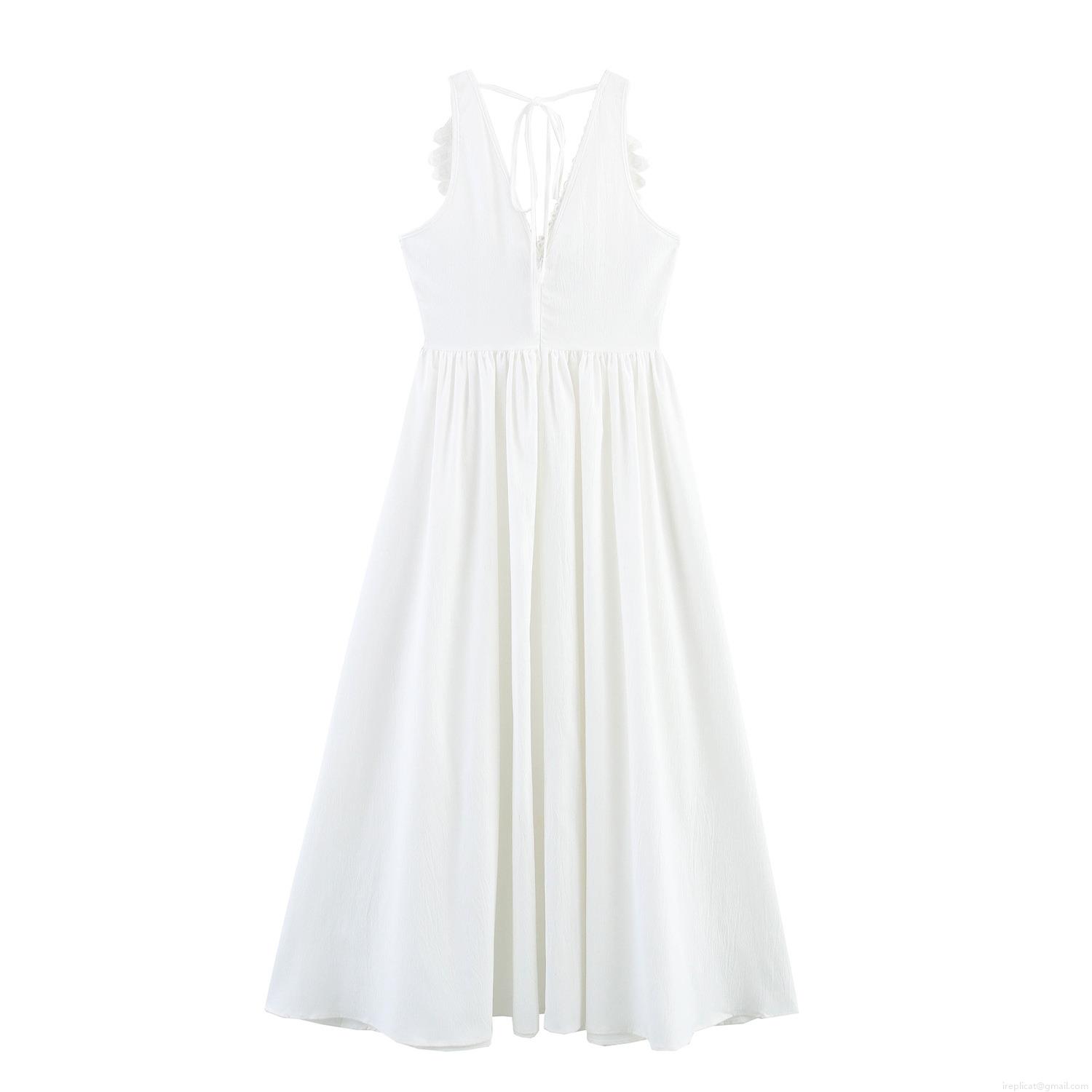 • Women's Sexy White Maxi Dress Backless Halter Neck Deep V Crochet Lace Stitching Summer Beach Vacation Boho Casual Sleeveless Long Dress