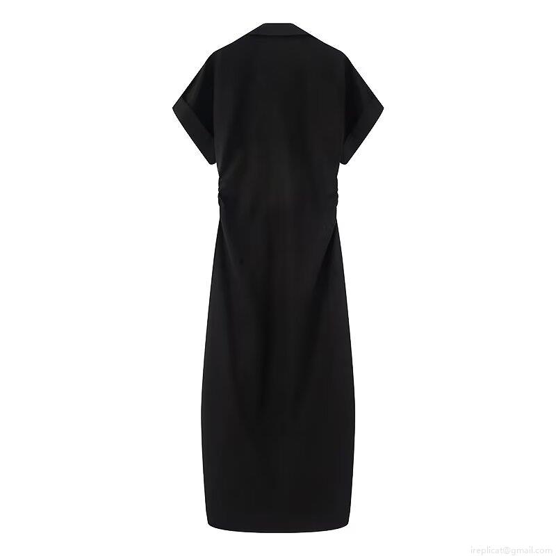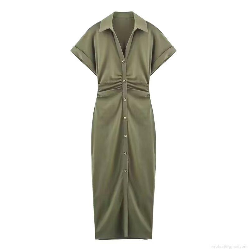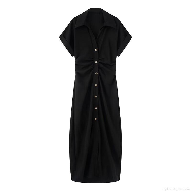 • Women's Short Sleeve Lapel V Neck Maxi Shirt Dress Polyester Pleated Waist Button Down Single Breasted Casual Streetwear Long Dresses For Women