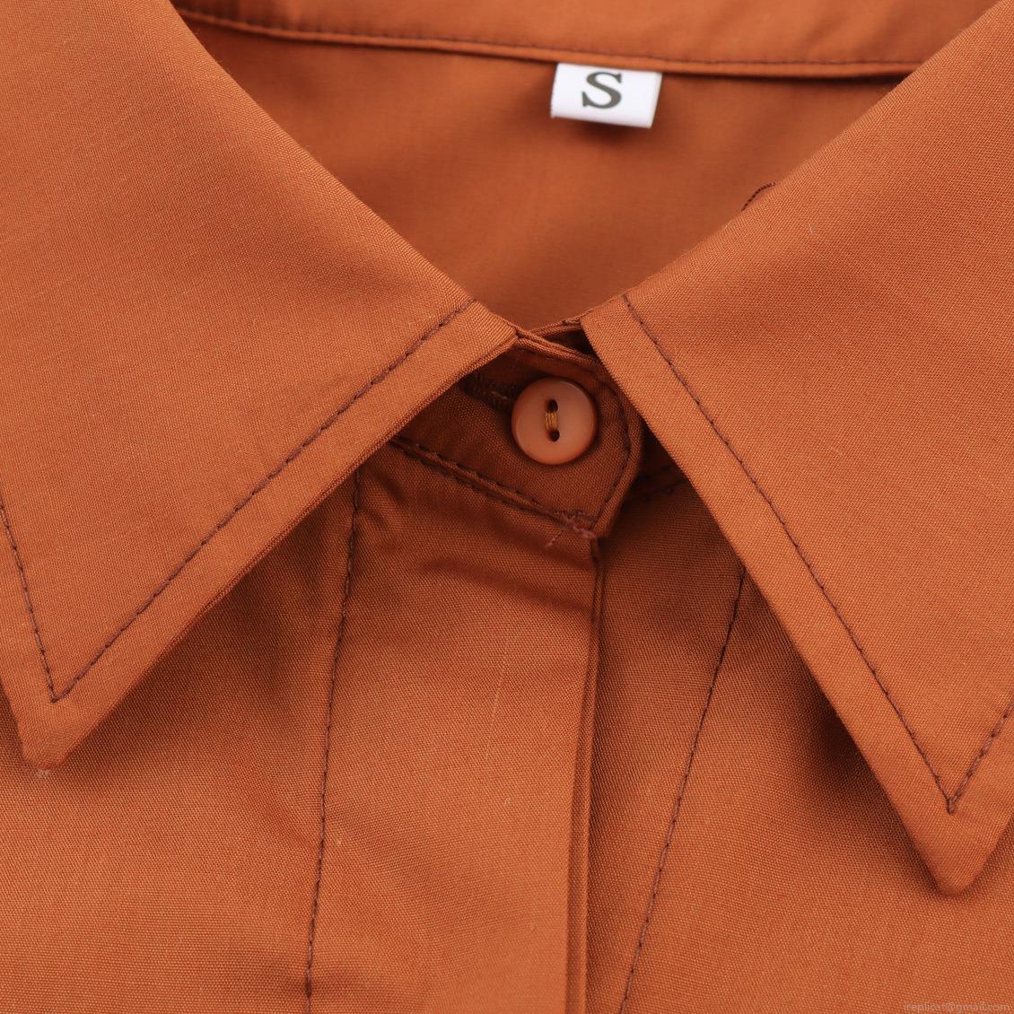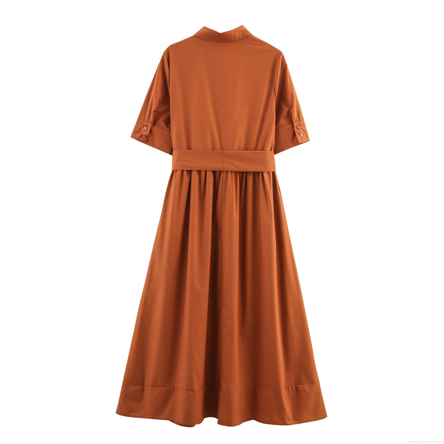• Women's Short Sleeve Shirt Maxi Dress Caramel Polyester Lapel Single Breasted Tie-Up Waist Casual Commuter Button Down Pocketed Long Dress For Ladies