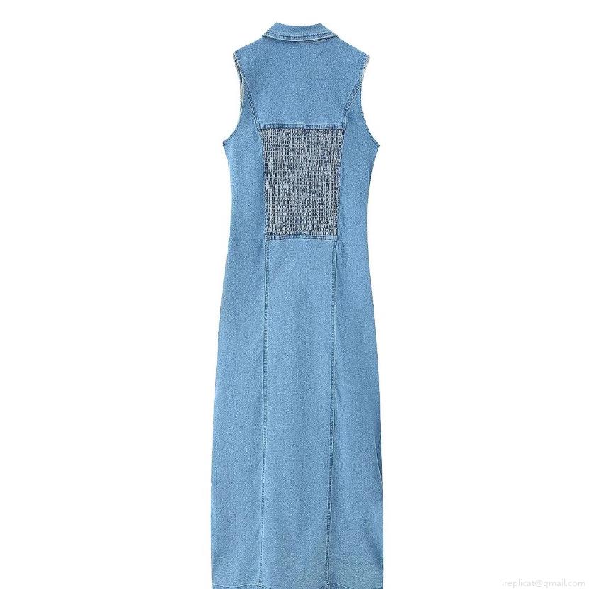 • Women's Sleeveless Denim Maxi Dress Slim Fit Single Breasted Metal Button Jean Dress Sexy Bodycon Lapel Collar Long Sundress Summer Fashion