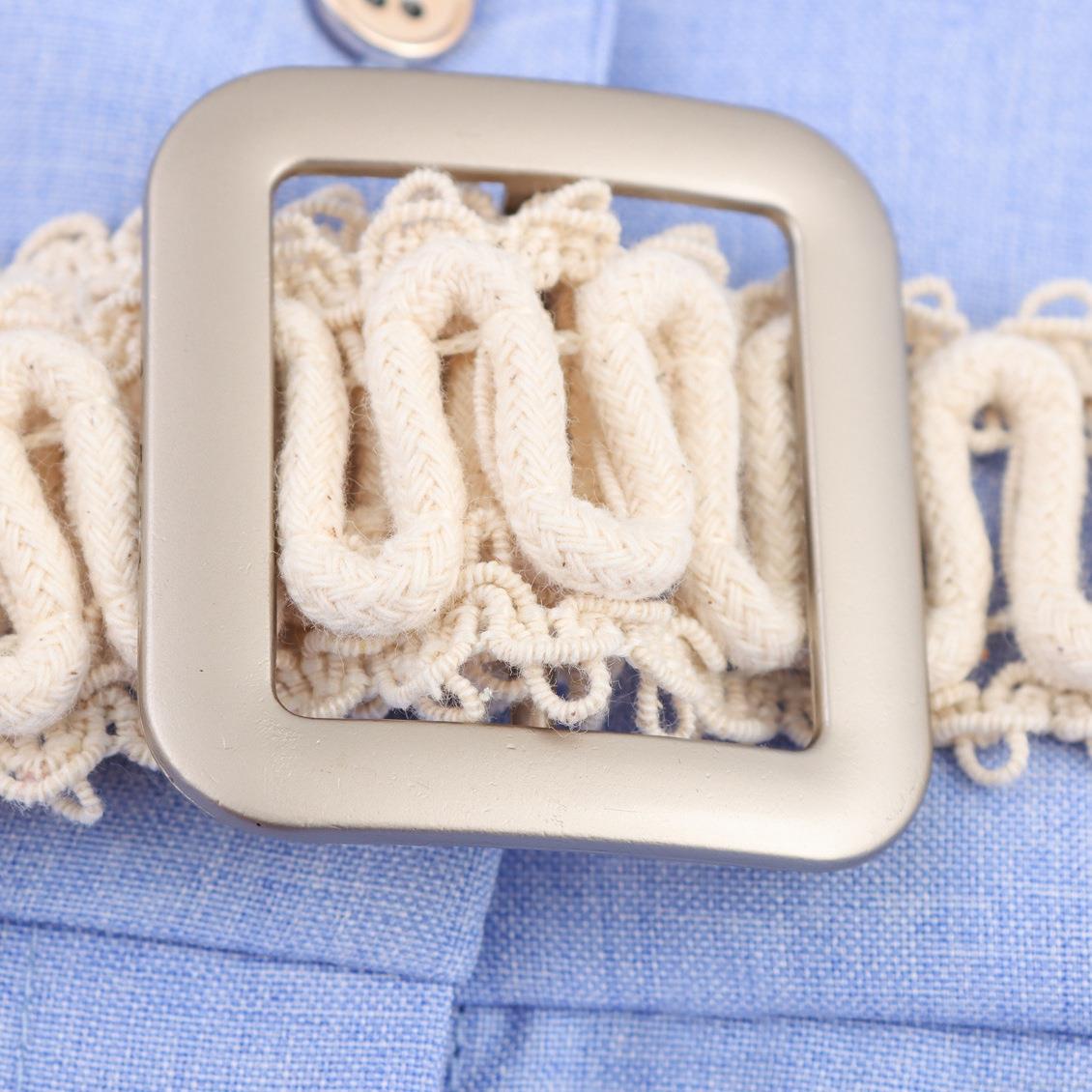 • Women's Sleeveless Faux Linen Maxi Dress With Braided Belt Lapel Tiered Cake Skirt Casual Elegant Summer Long Dress For Vacation Party