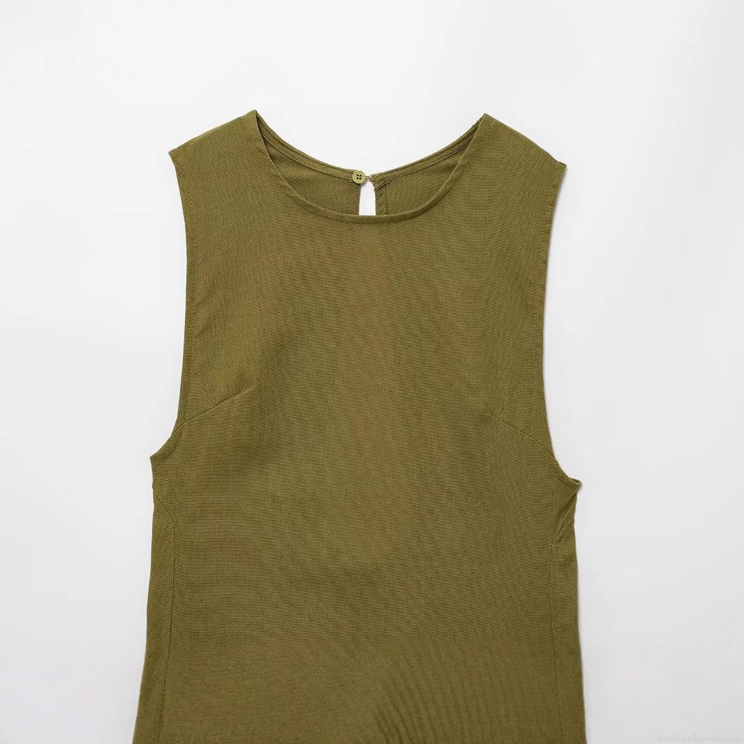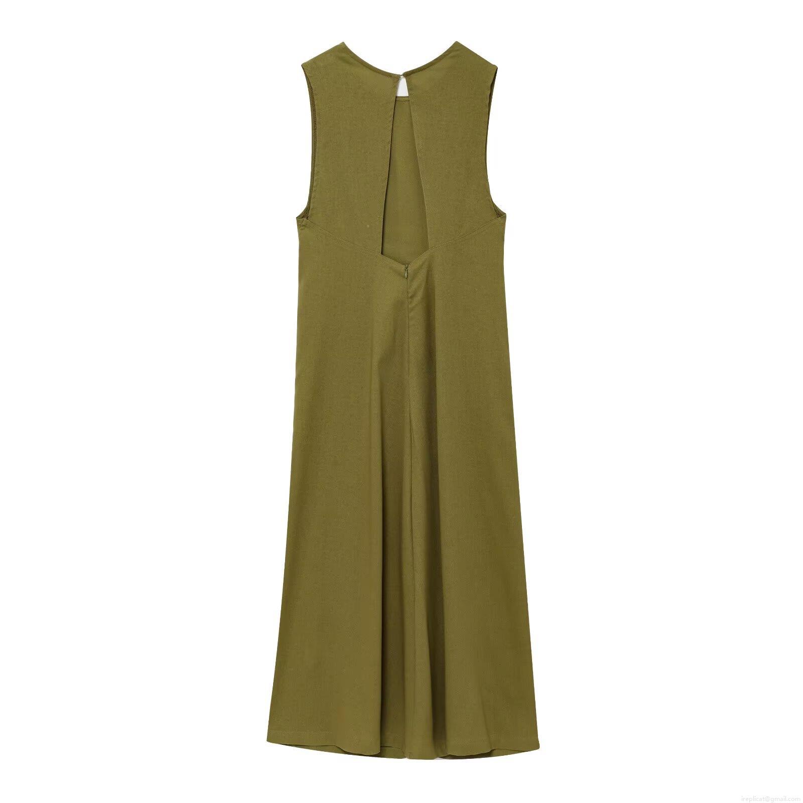 • Women's Sleeveless Maxi Dress Cotton Linen Blend Round Neck Backless Cut Out Plain Olive Green Elegant Summer Beach Casual Party Dress